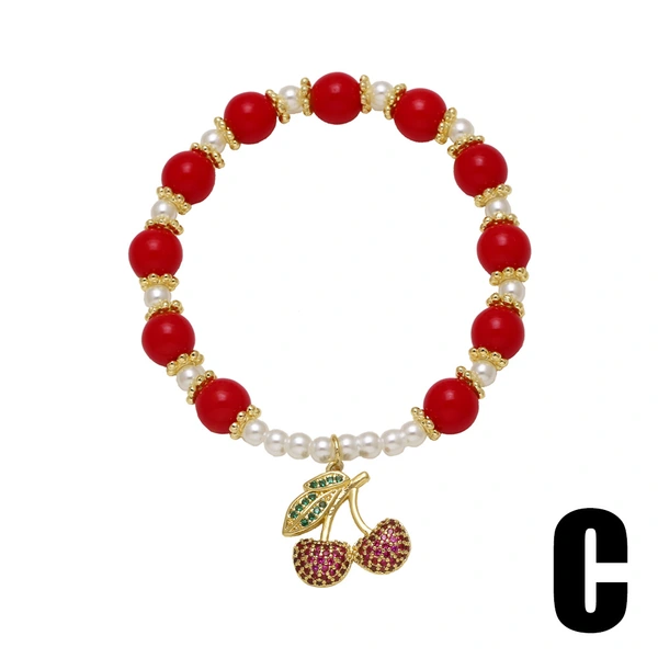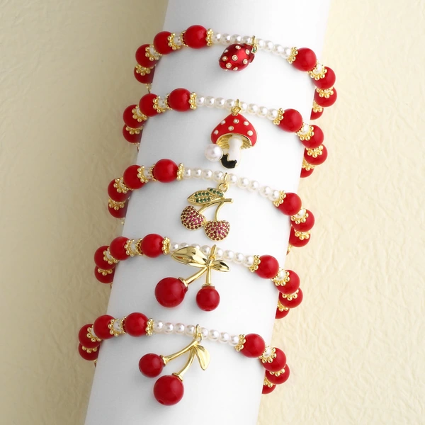 Bracelet pendentif en forme de champignon et de cerise, perles rouges, bijou pour la main, bre40