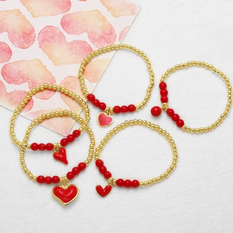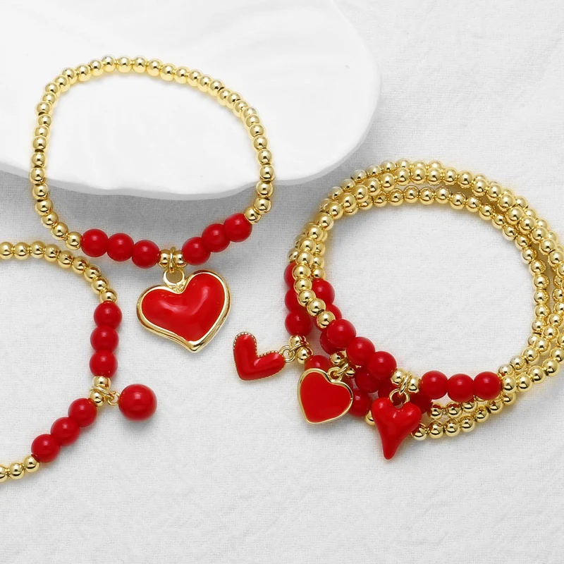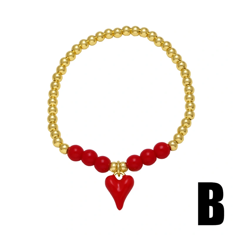Bracelet pendentif en forme de cœur en or 18 carats plaqué cuivre et perles pour femme, modèle tendance, brb60