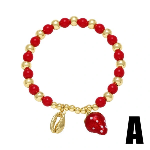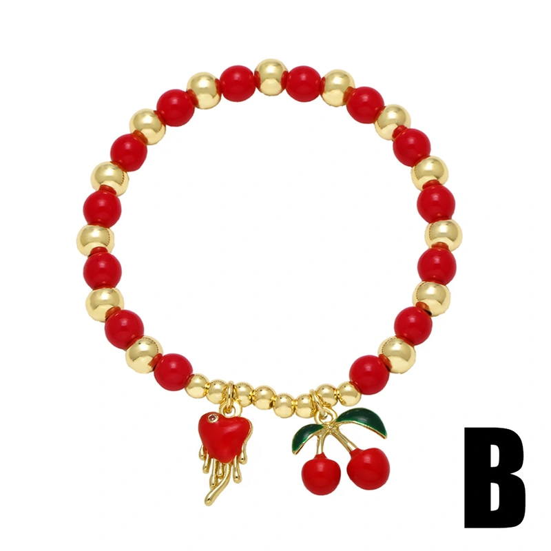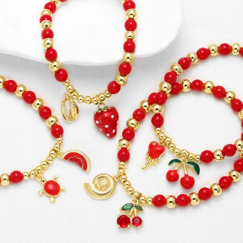 Bracelet pendentif en perles rouges pour femme, bijou européen et américain, motif cerise et fraise, brm39