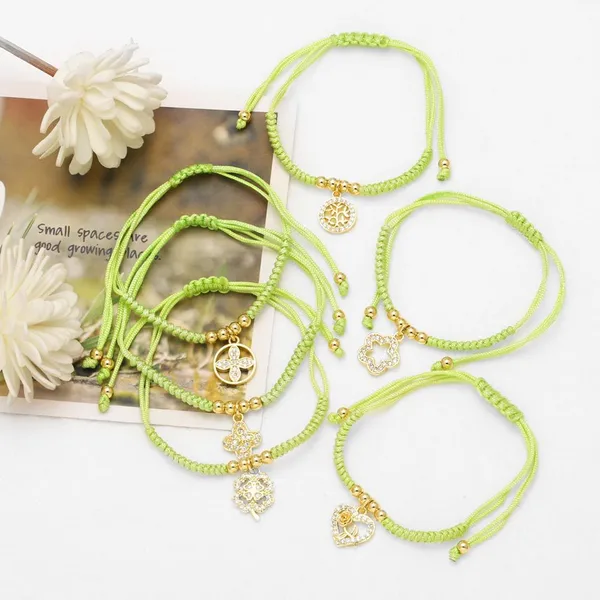 Bracelet pendentif fleur d'amour plaqué or pour femme, bijou tendance européen et américain, corde réglable, brm72