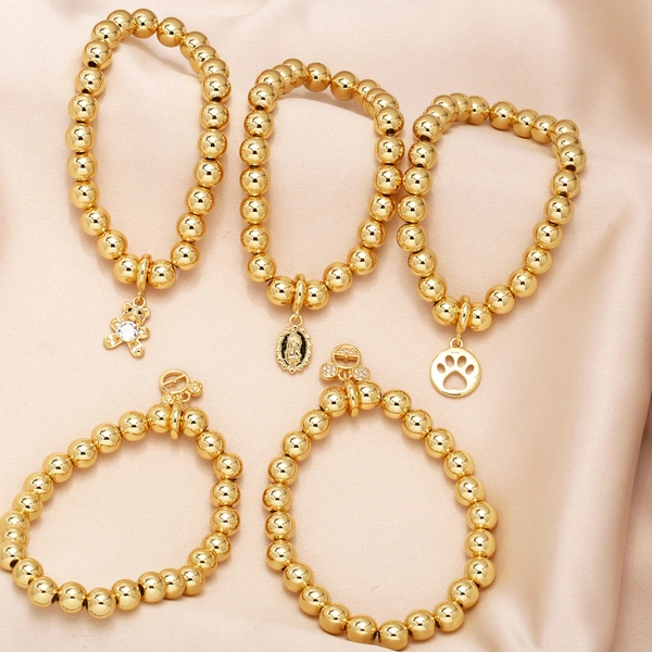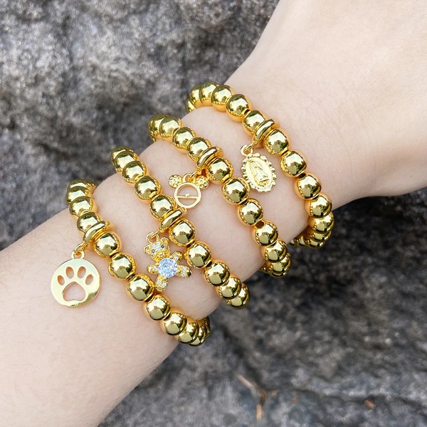 Bracelet pendentif ours plaqué or, polyvalent, incrusté de zircons, Notre-Dame des perles, bracelet brc72