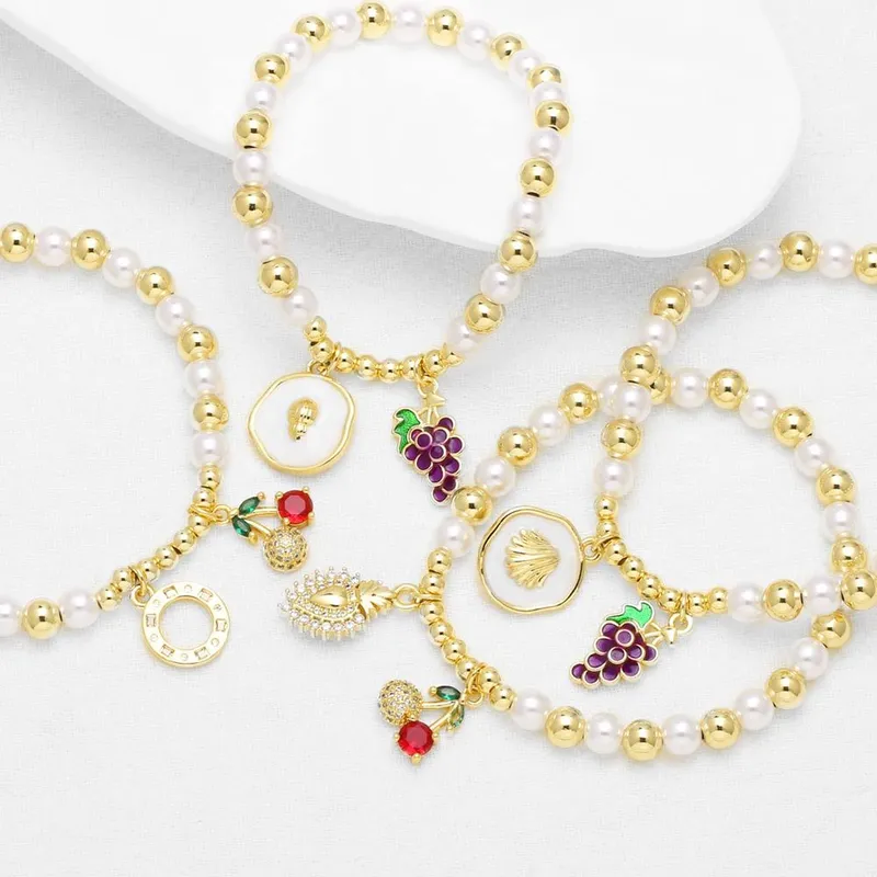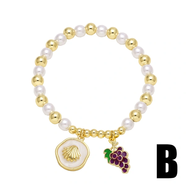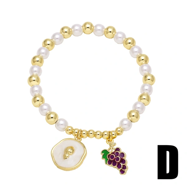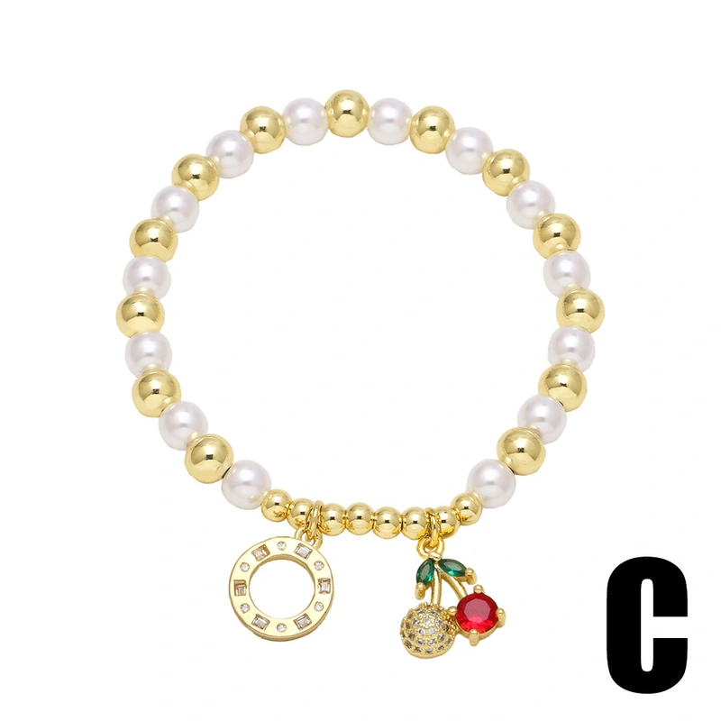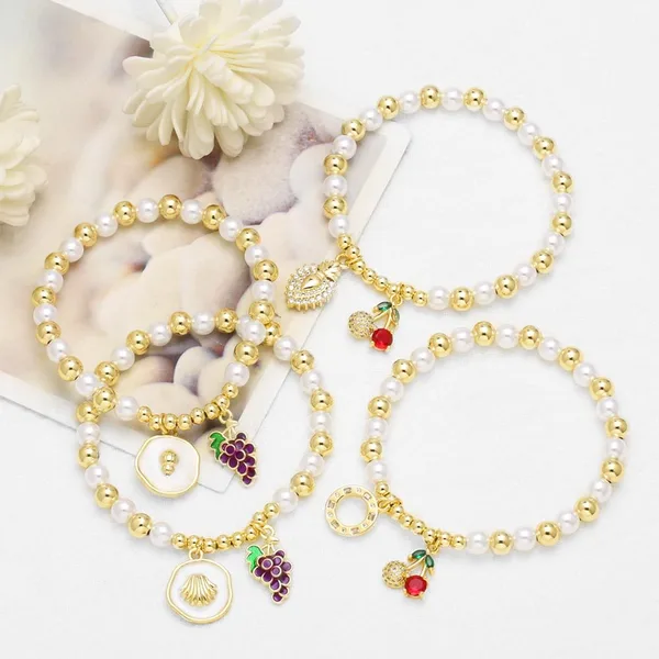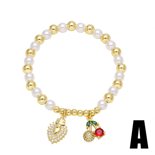 Bracelet plaqué or pour femme, bijou tendance, perle, fruit, cerise, amour, brm76