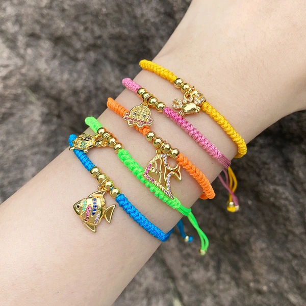 Bracelet tressé à la main en corde style bohème, style européen et américain, pendentif tortue crabe poulpe style océan, brh16
