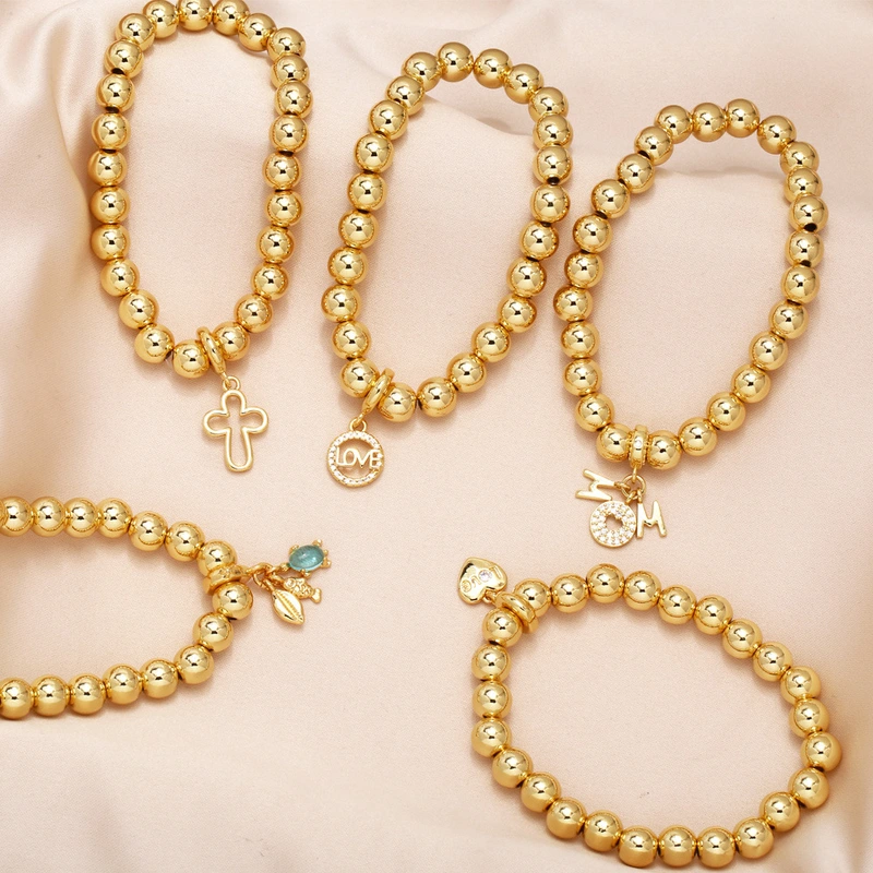 Bracelets de perles tendance, bracelets à pendentif plaqué or avec croix d'amour de mode européenne et américaine, vente en gros brc74