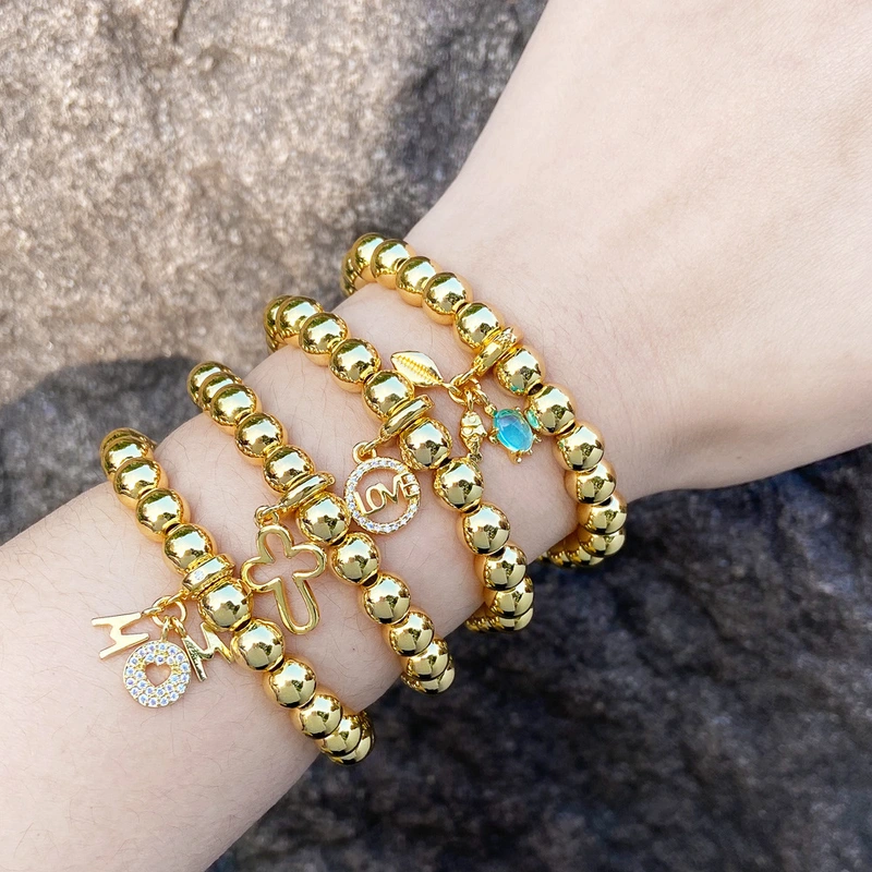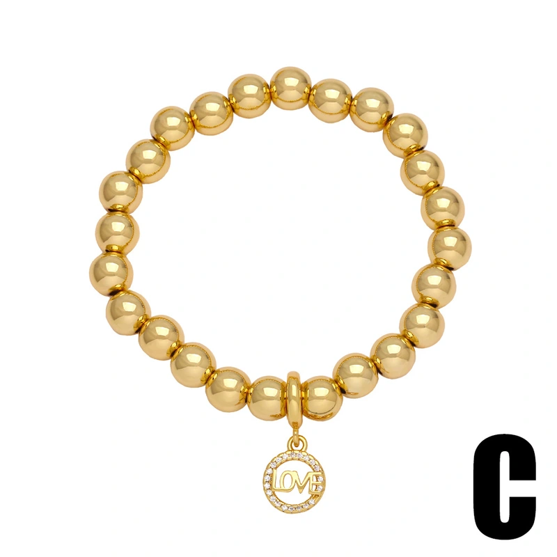 Bracelet en perles tridimensionnelles en or, 26 lettres anglaises, vente à chaud, brb34