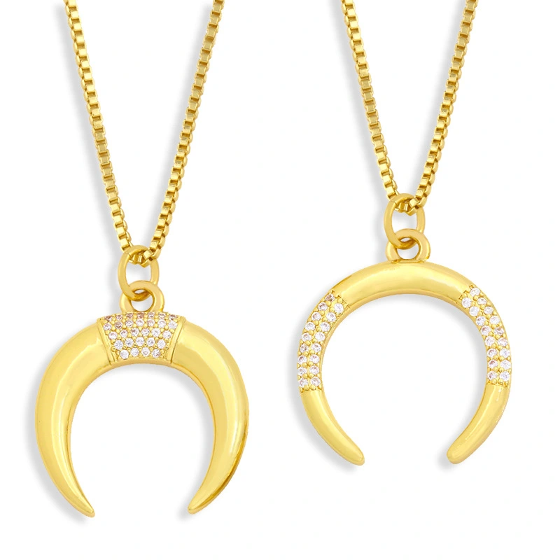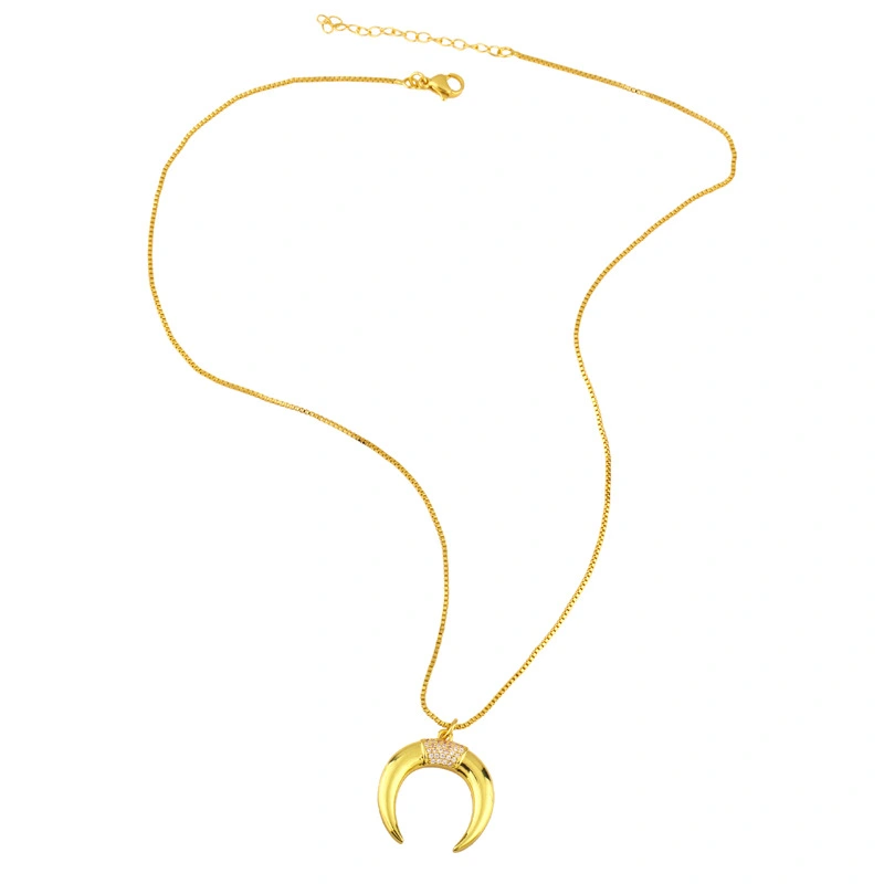 Chaîne de clavicule avec pendentif en zircon incrusté de croissant créatif, accessoire tendance de luxe léger et polyvalent, nkw36