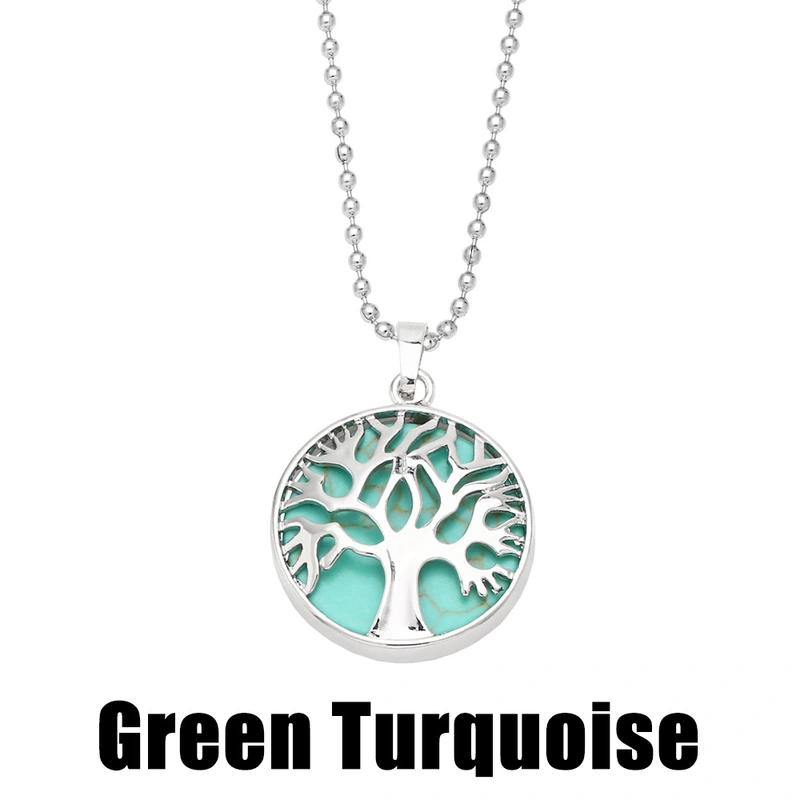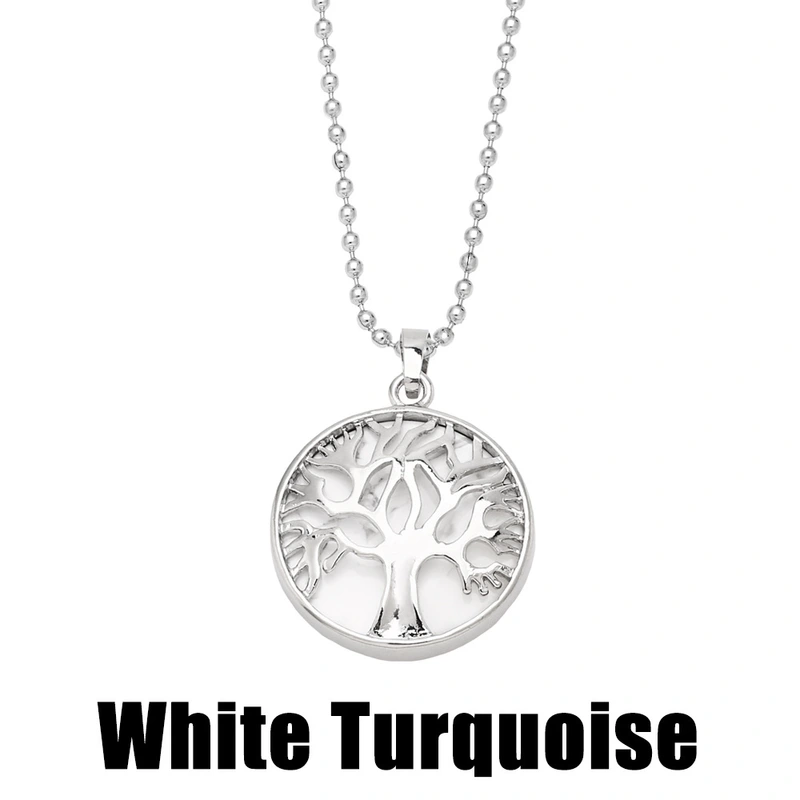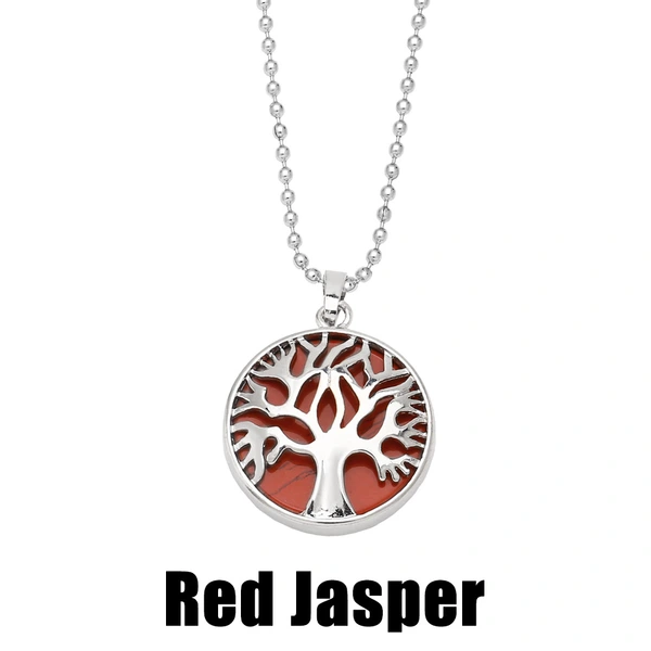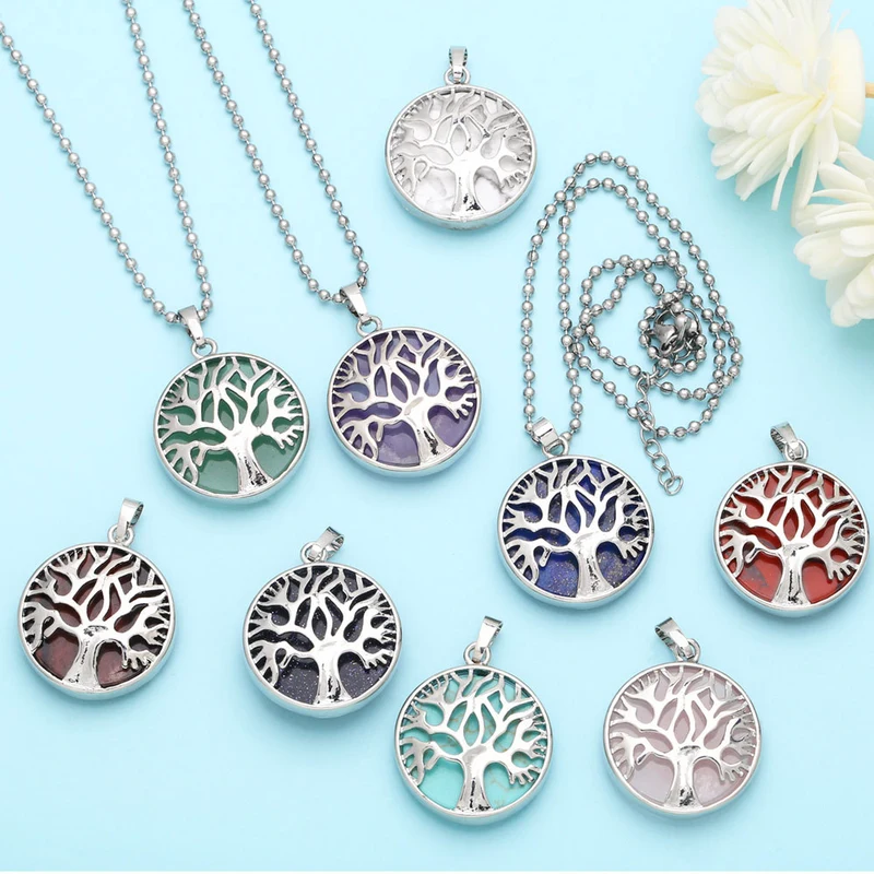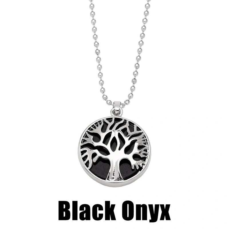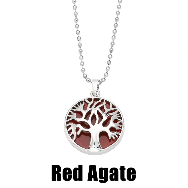 Collier arbre de vie en cristal d'agate, pendentif rond creux rétro, nkb633