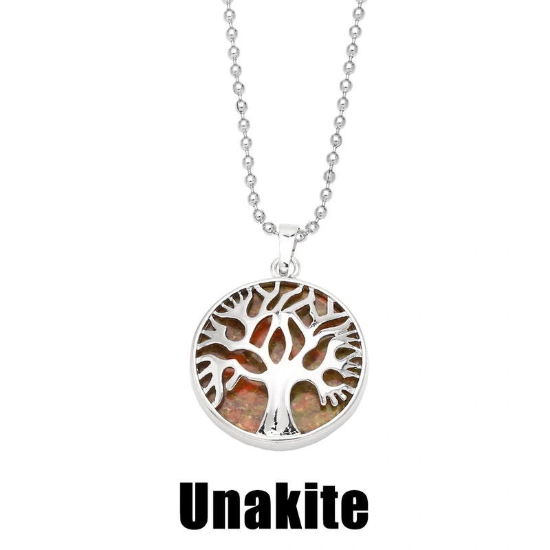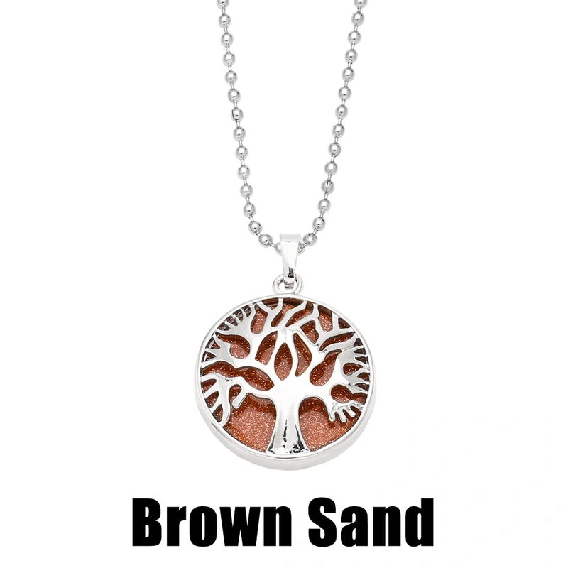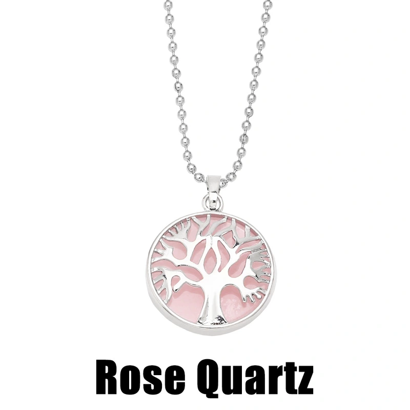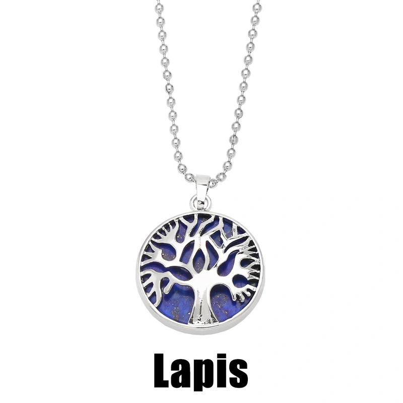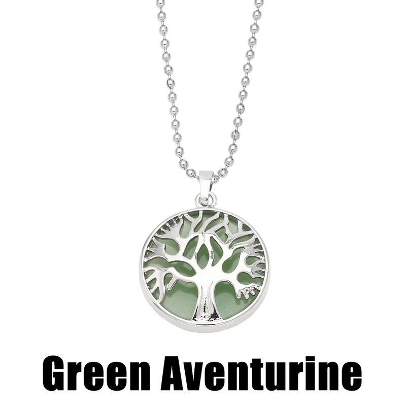 Collier arbre de vie en cristal d'agate, pendentif rond creux rétro, nkb633