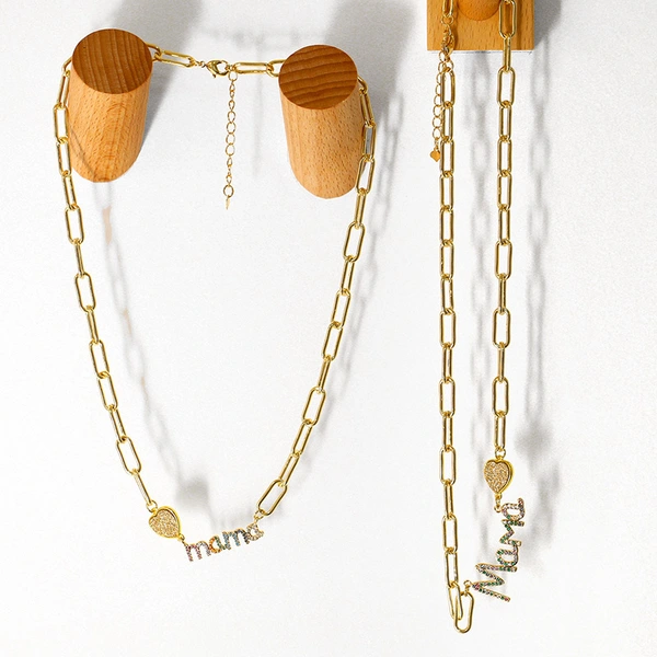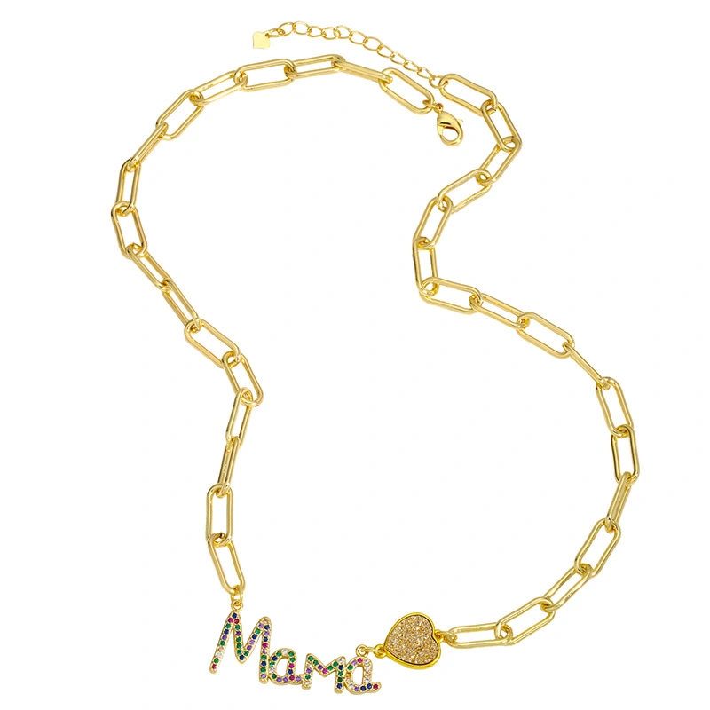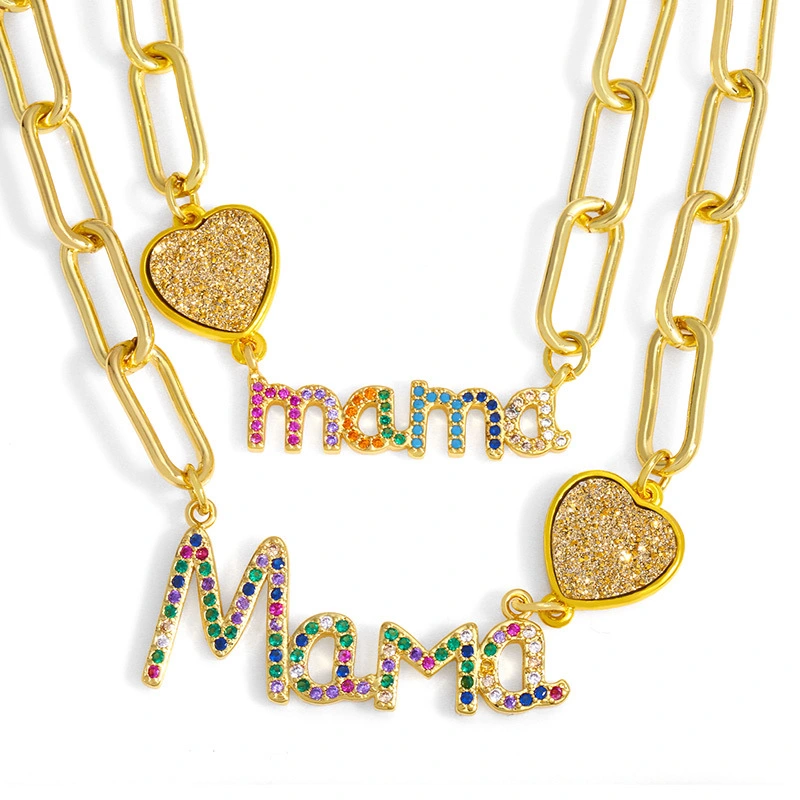 Collier avec lettres incrustées de diamants européens et américains, chaîne épaisse pour clavicule, cadeau de fête des mères, nku73