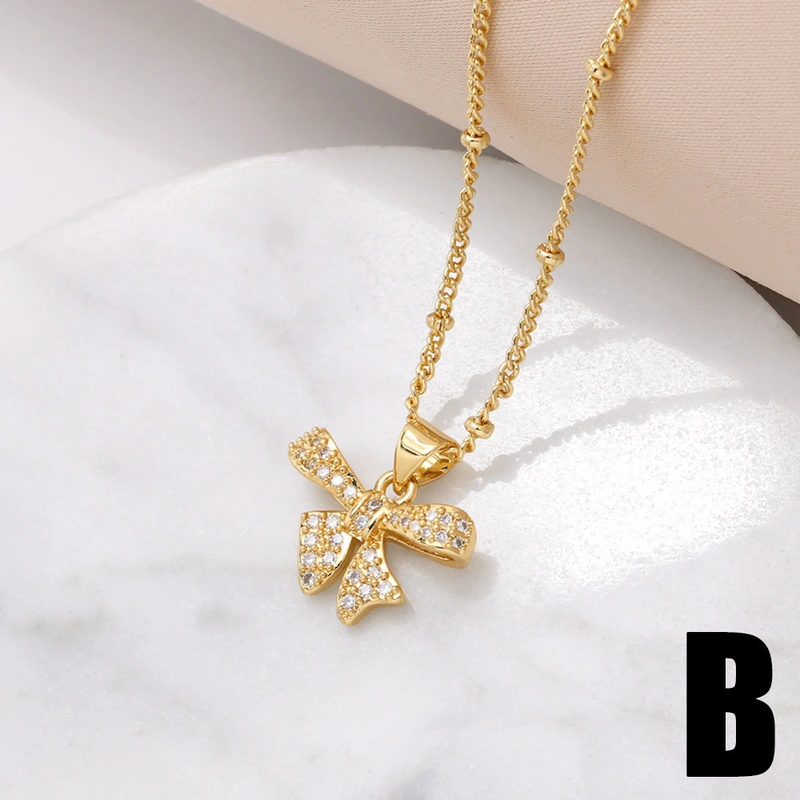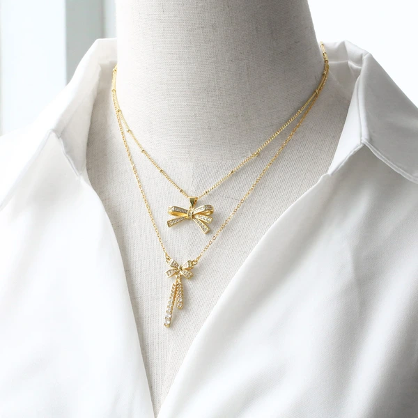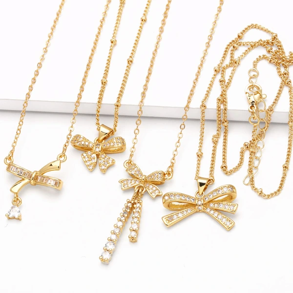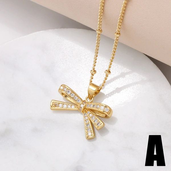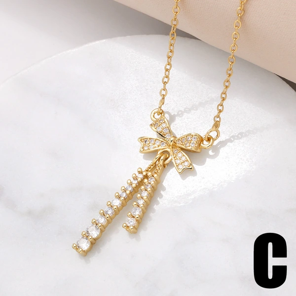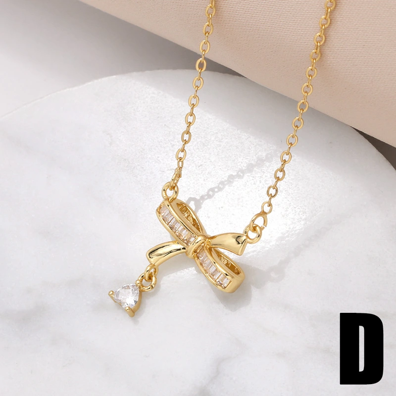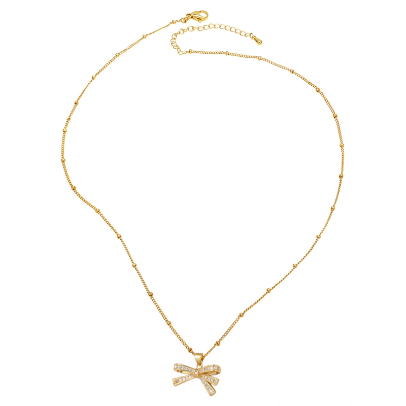 Collier avec nœud en or véritable plaqué cuivre, chaîne de clavicule incrustée de zircons, style européen et américain, tendance, nku56