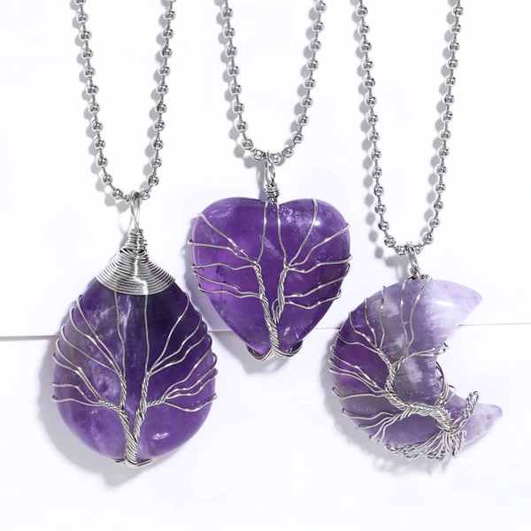 Collier avec pendentif arbre de vie en améthyste pour femme, bijou tendance, motif lune et amour, nkp77