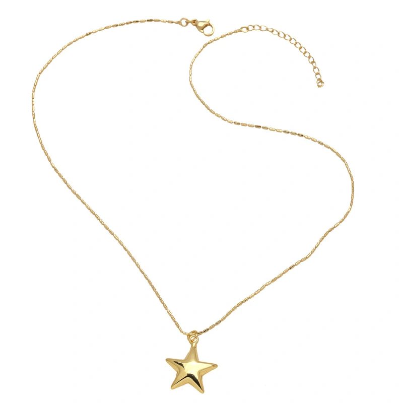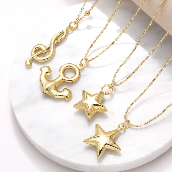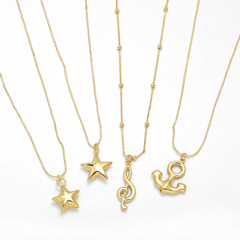 Collier avec pendentif brillant en forme d'étoile à cinq branches, plaqué or, chaîne de clavicule en forme de note de musique nky10