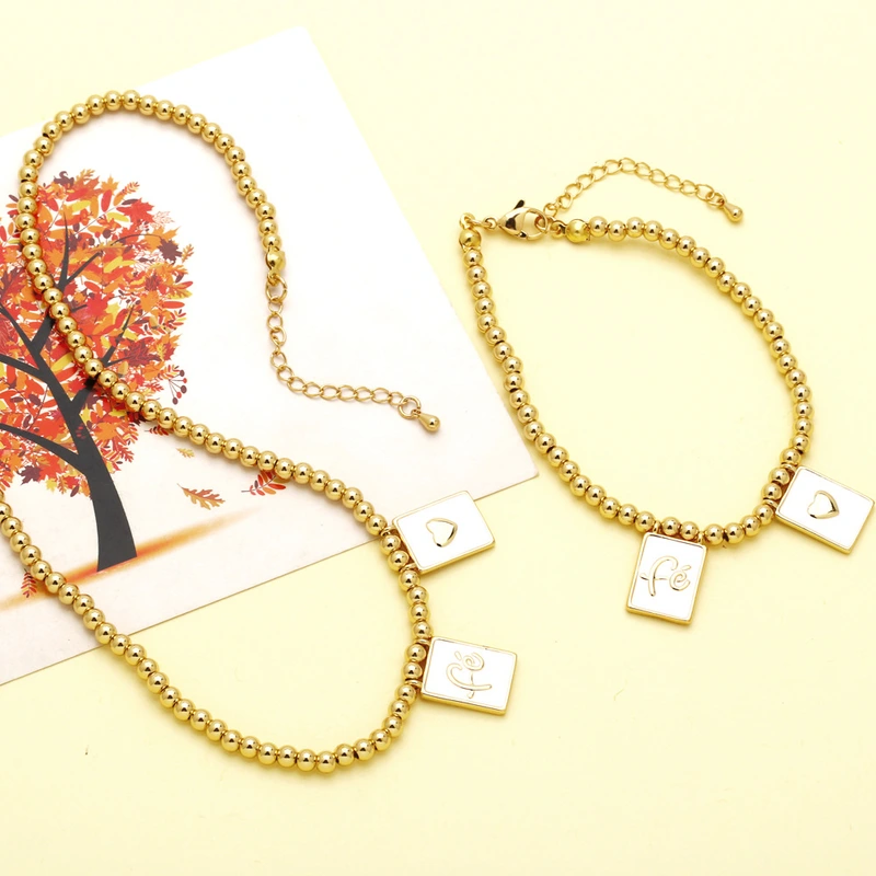 Collier avec pendentif carré en forme de lettre FE, bijou européen et américain, chaîne de clavicule à perles rondes haut de gamme, nkw96