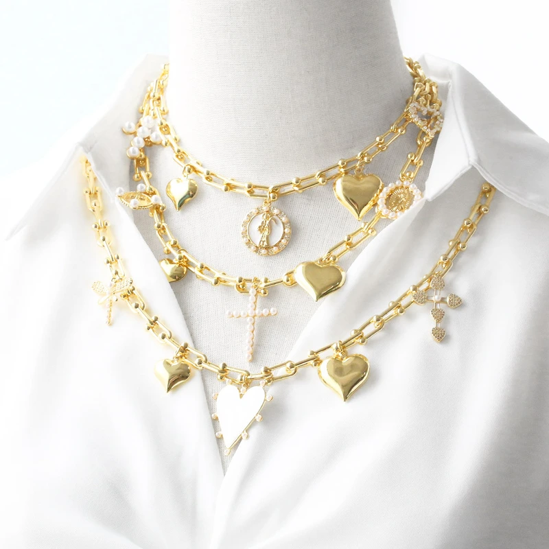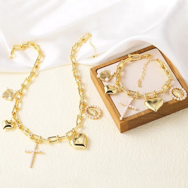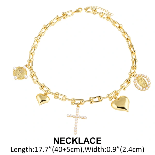 Collier avec pendentif croix de perles Madonna pour femme, chaîne de clavicule plaquée or, liquidation, offre spéciale, nkv49