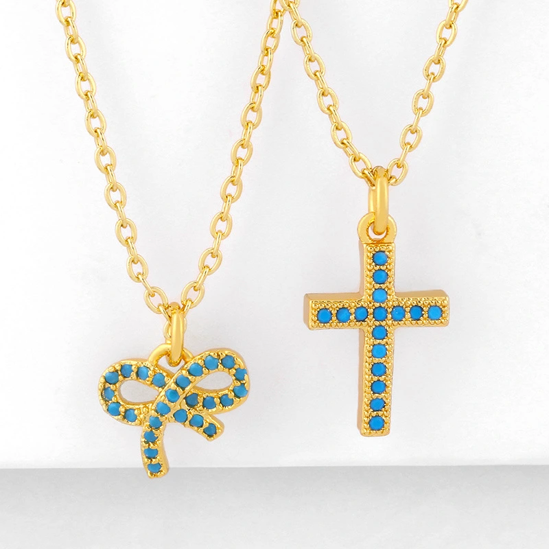 Collier avec pendentif croix en diamant, bijoux européens et américains, collier avec pendentif nœud super féerique, soldes, nkq44