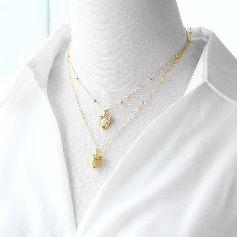 Collier double amour pour femmes, collier pendentif cœur à cœur européen et américain, collier exquis en forme de cœur, bijoux