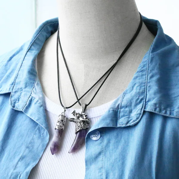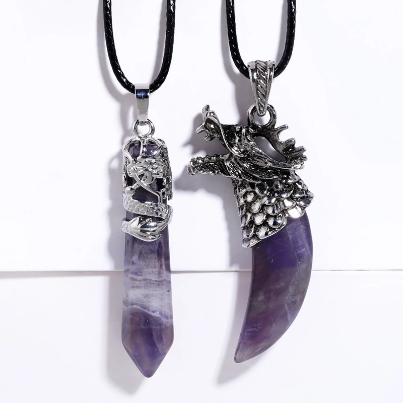 Collier avec pendentif en améthyste en forme de dragon, style ethnique chinois rétro, tendance, tendance, nkb744