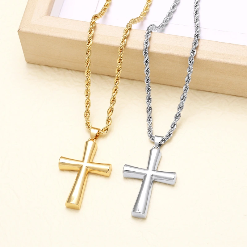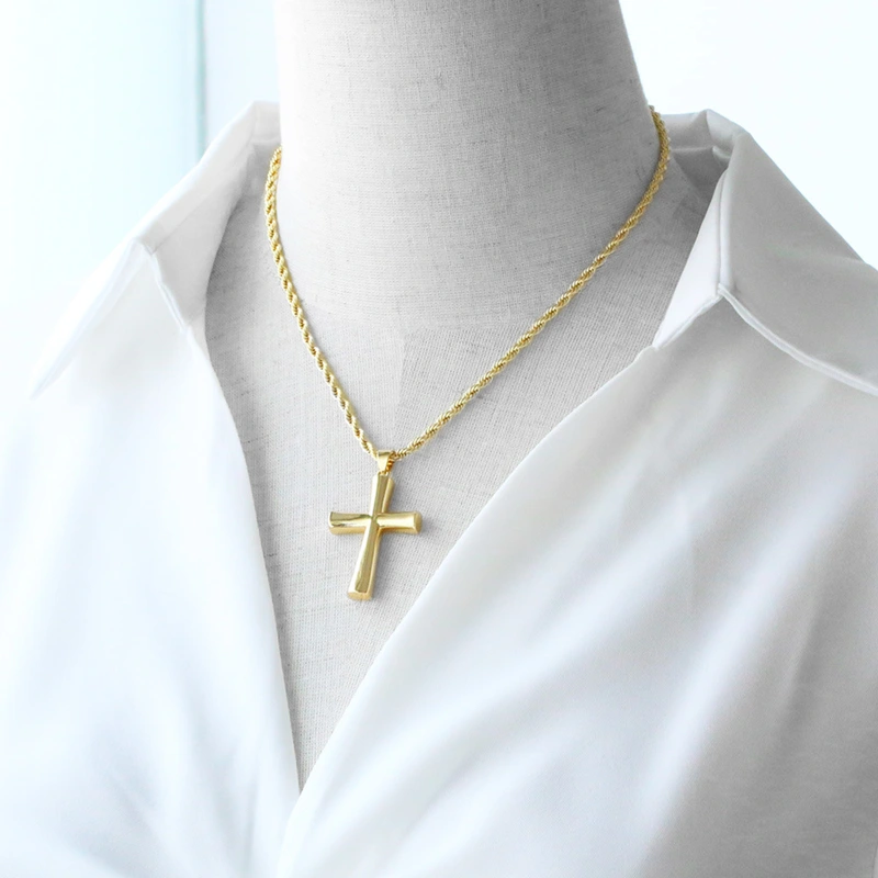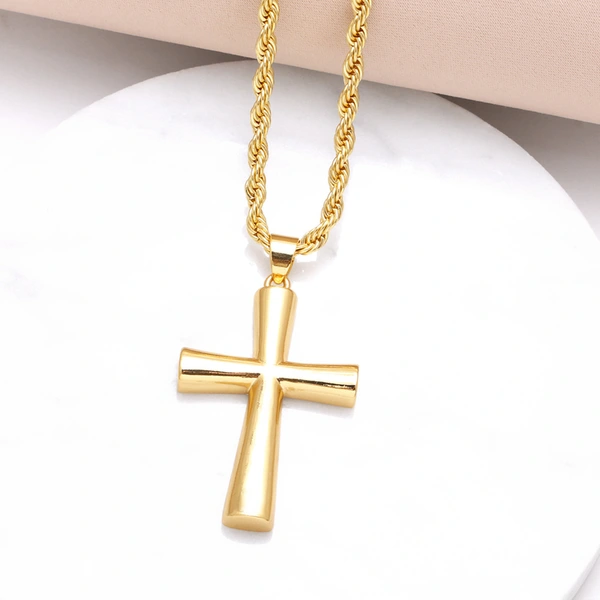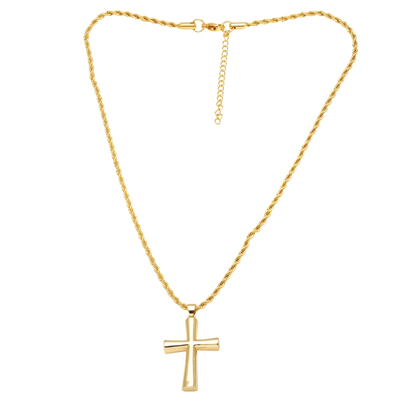 Collier avec pendentif en croix lisse pour homme, chaîne de clavicule en or 18 carats plaqué cuivre, tendance, nkt91