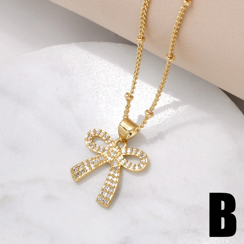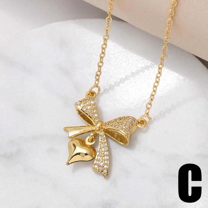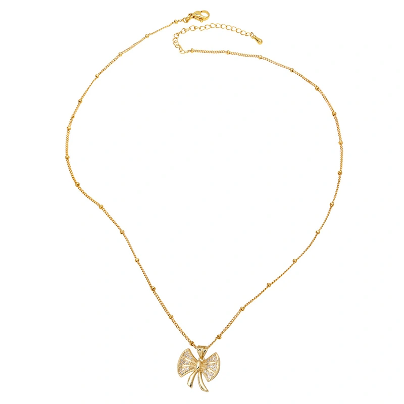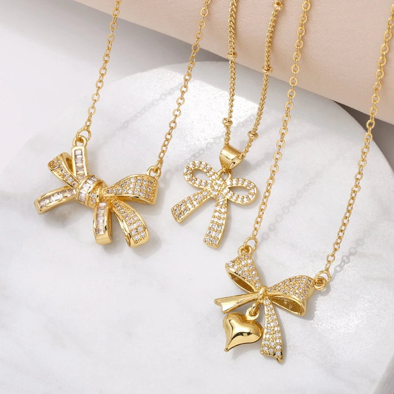 Collier avec pendentif en forme d'arc européen et américain pour femme, chaîne de clavicule en forme de cœur plaqué or et zircons incrustés, nku42