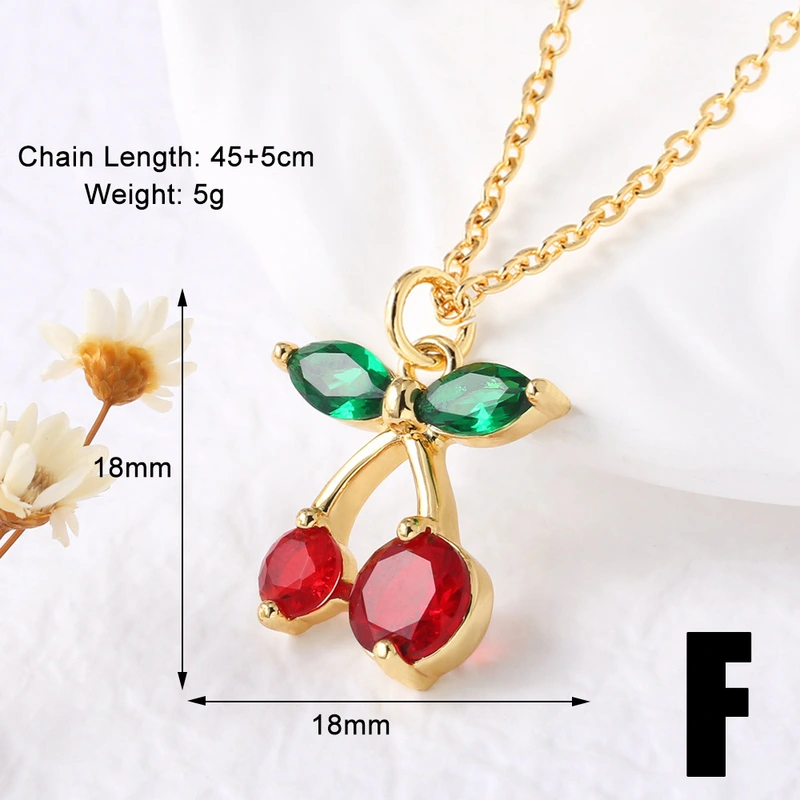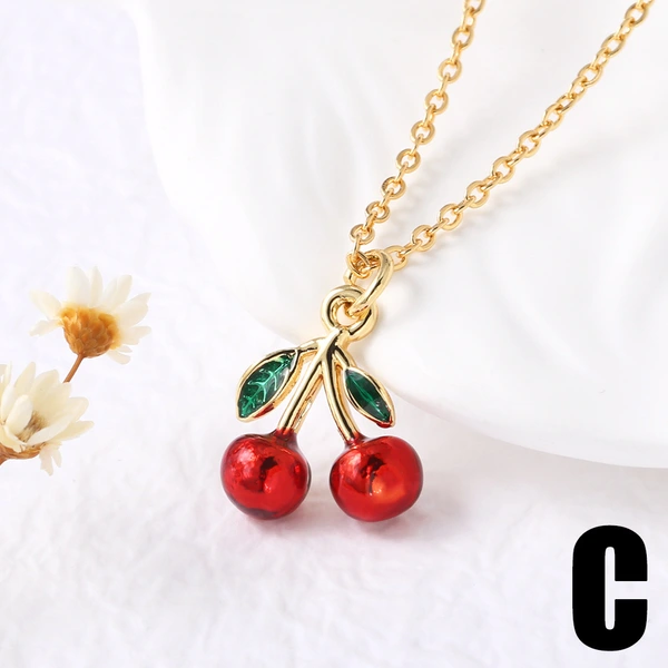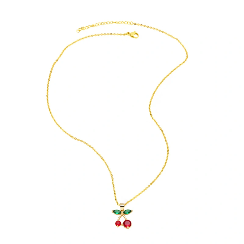 Collier avec pendentif en forme de cerise et de fruit, plaqué or, chaîne de clavicule, tendance, nky75