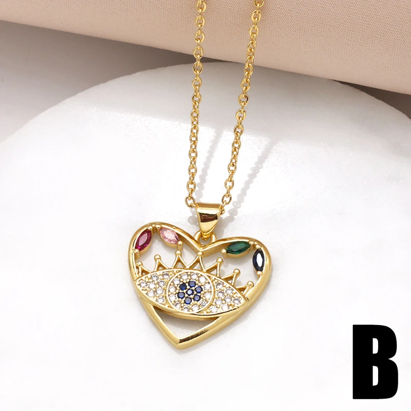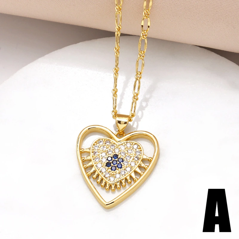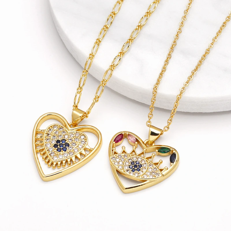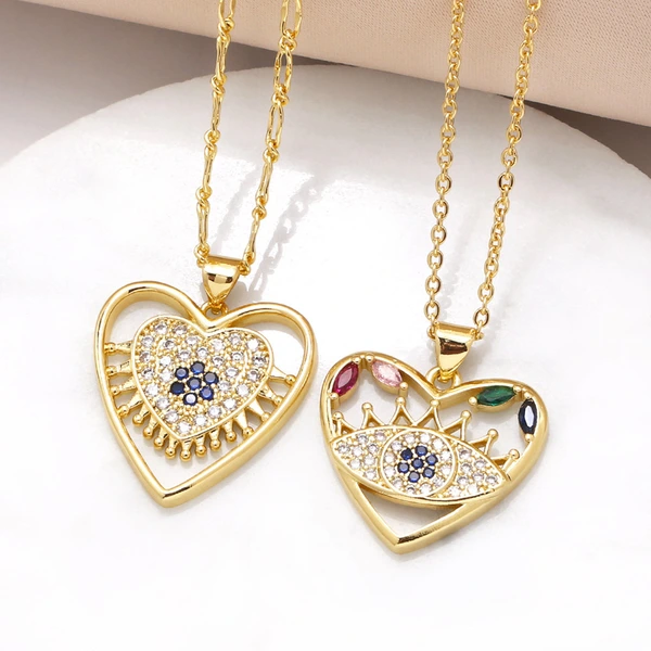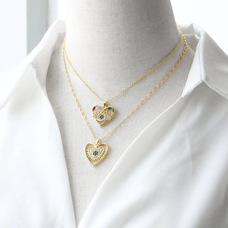 Collier avec pendentif en forme de cœur en zircon plaqué or, nouvelle couleur, nkb700