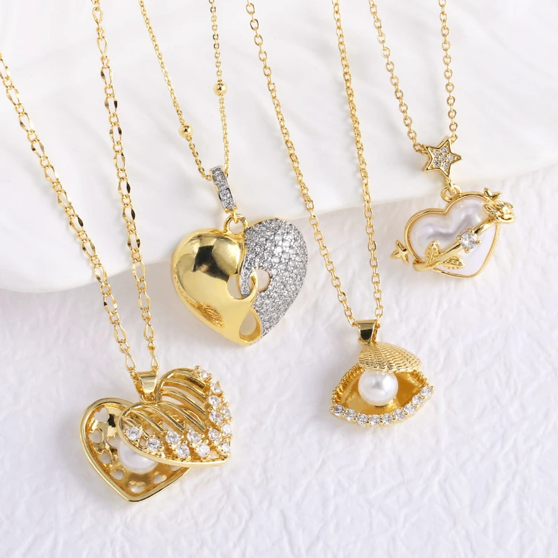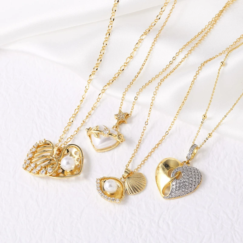 Collier avec pendentif en forme de cœur et de coquillage, bijou tendance, chaîne de clavicule, nkb036