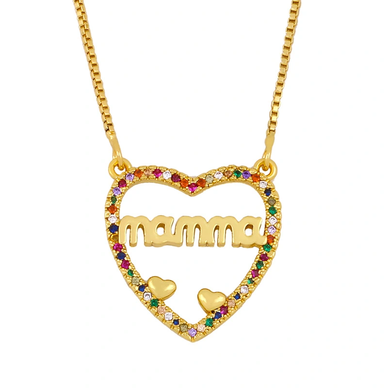 Collier avec pendentif en forme de cœur et diamant, bijou en liquidation, lettre Mama, cadeau pour la fête des mères, nkq51