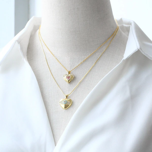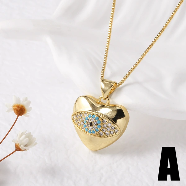 Collier avec pendentif en forme de cœur et d'œil, plaqué cuivre, chaîne de clavicule en or 18 carats, nkb363