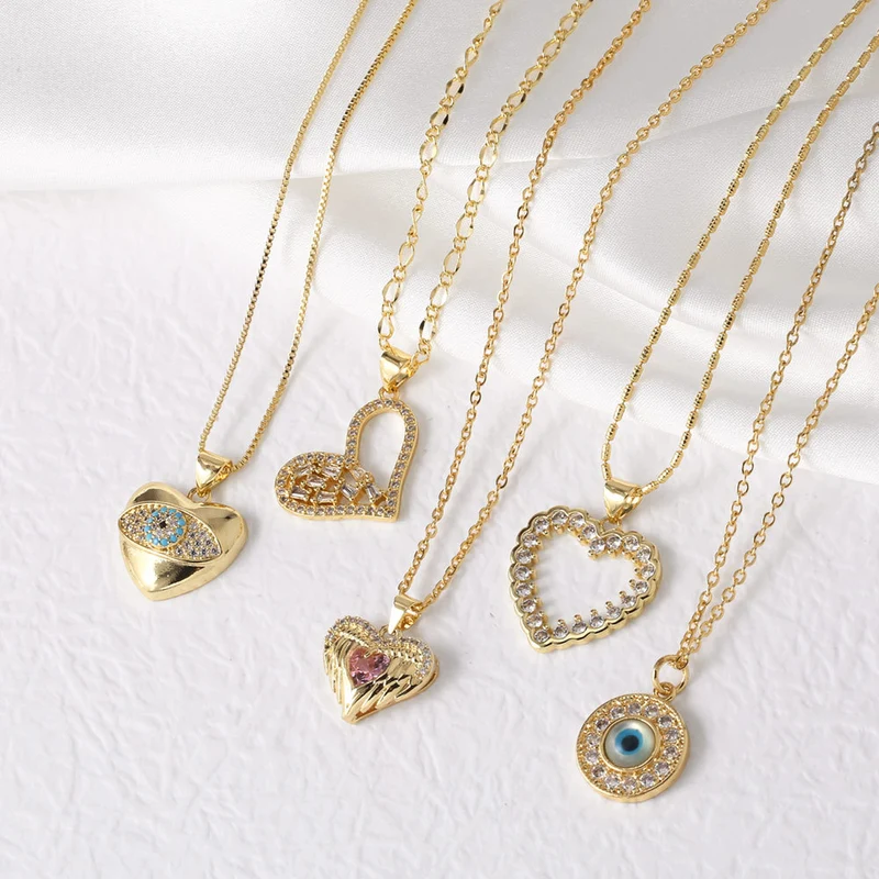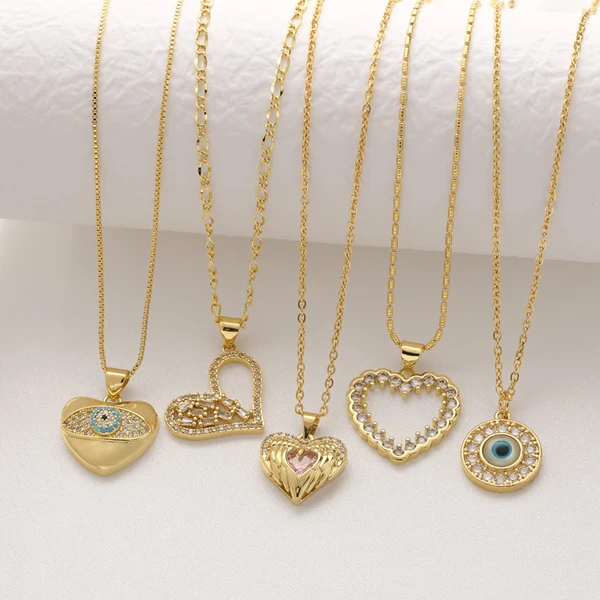 Collier avec pendentif en forme de cœur et œil en zircon, style tendance, chaîne de clavicule, nka091