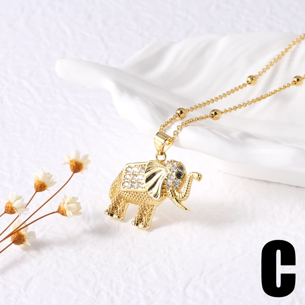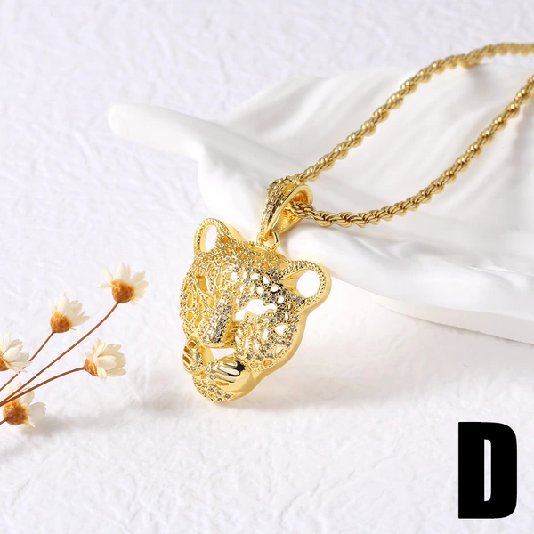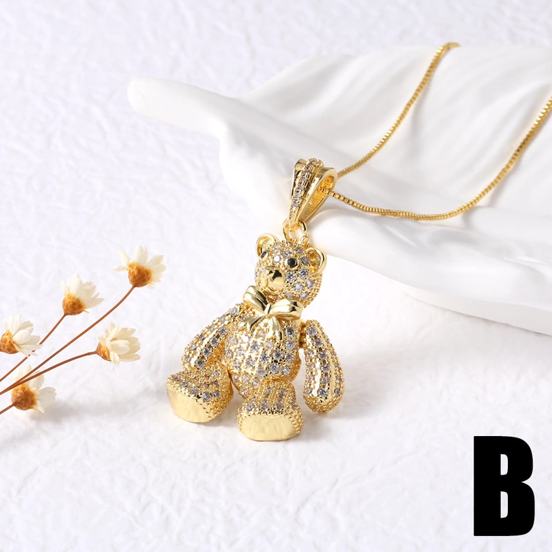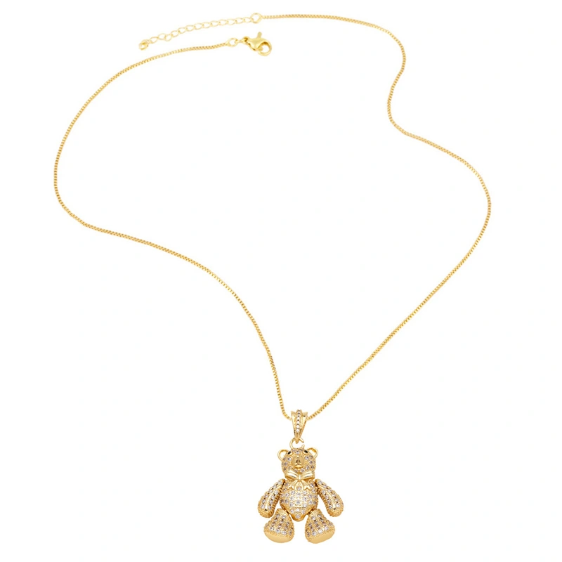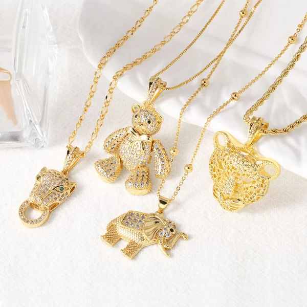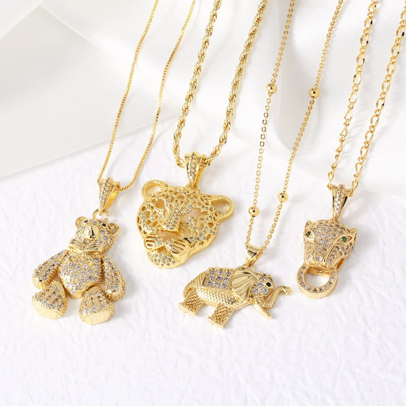 Collier avec pendentif en forme d'ours et d'éléphant pour femme, bijou tendance, style européen et américain, tête de léopard entièrement en diamants, nkb395