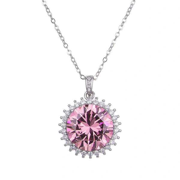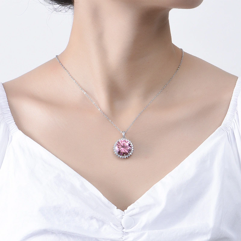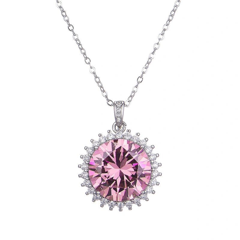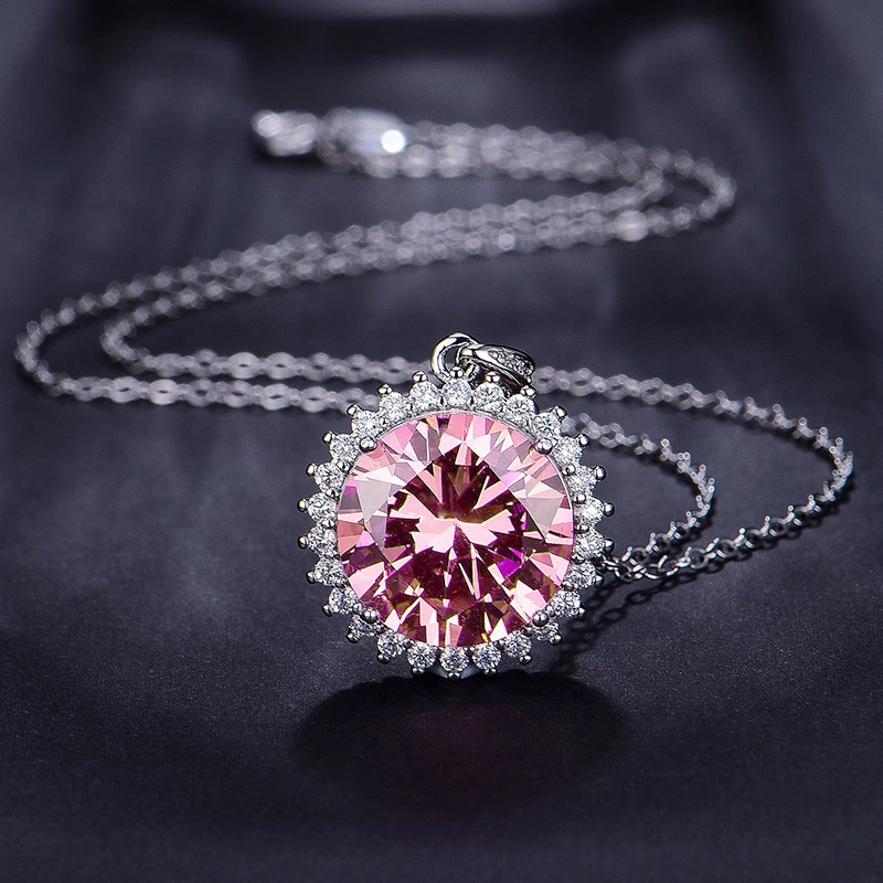 Collier avec pendentif en or blanc plaqué cuivre et diamant rose micro-incrusté, modèle de bien-être diffusé en direct, collier très vendu