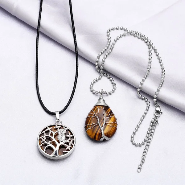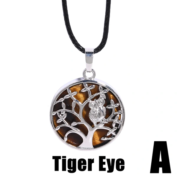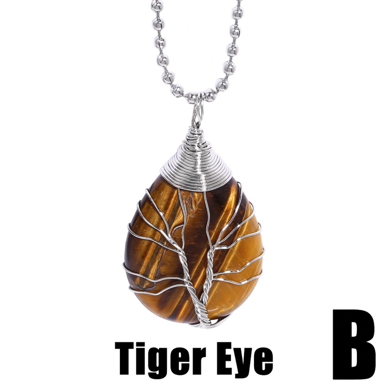 Collier avec pendentif en pierre œil de tigre, pendentif géométrique rond en forme de larme, arbre de vie, collier pour femme, nkb659
