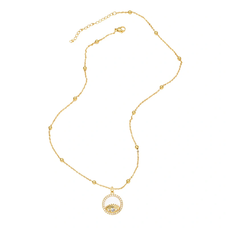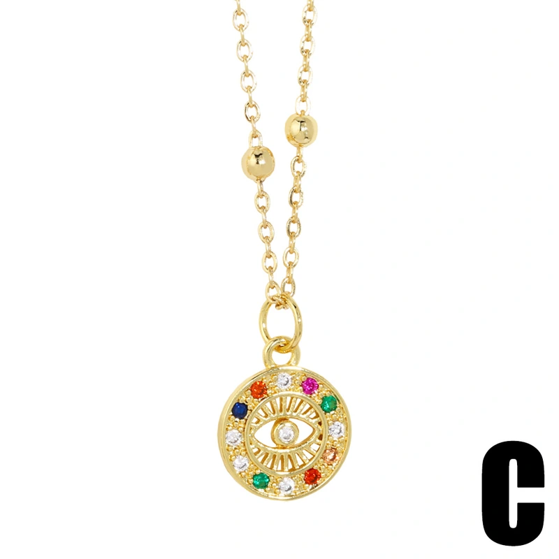 Collier avec pendentif œil du diable en zirconium coloré pour femme, bijou européen et américain, marque ronde, nkp79