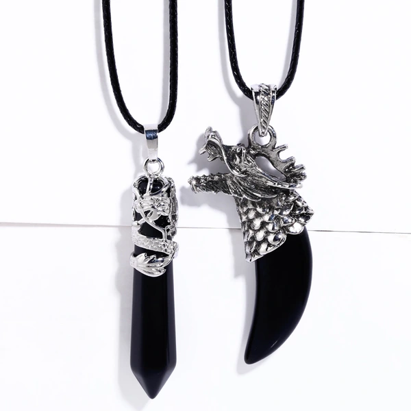 Collier avec pendentif tête de dragon en agate noire, style hip-hop rétro européen et américain, chaîne de pull de style ethnique, vente en gros, nkb740