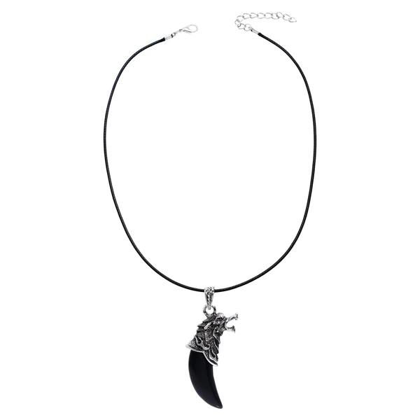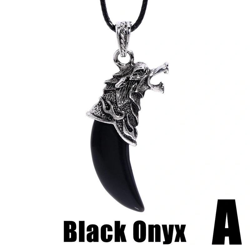 Collier avec pendentif tête de loup et dents de loup, style rétro européen et américain, chaîne de pull, agate noire, colonne hexagonale, nkb704
