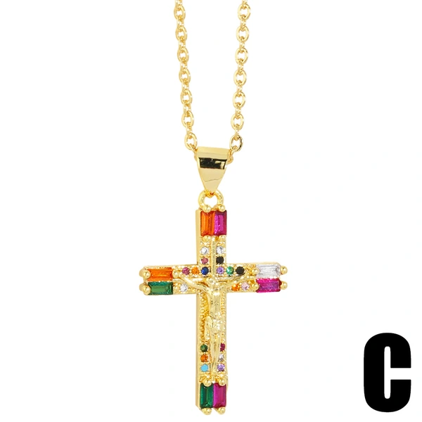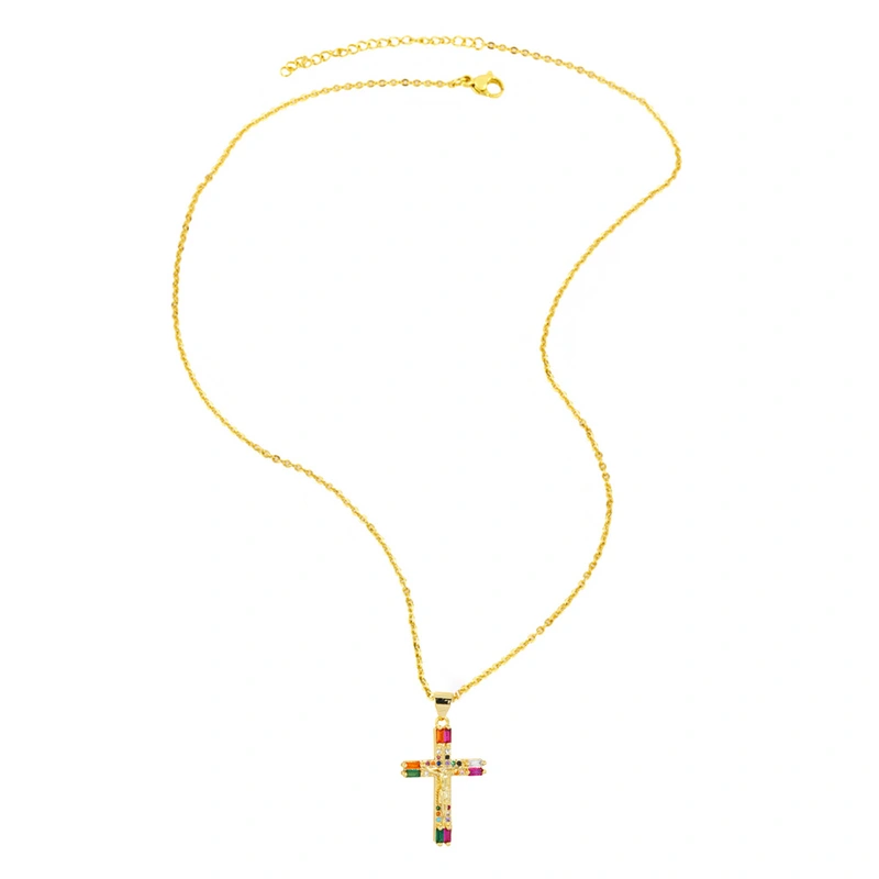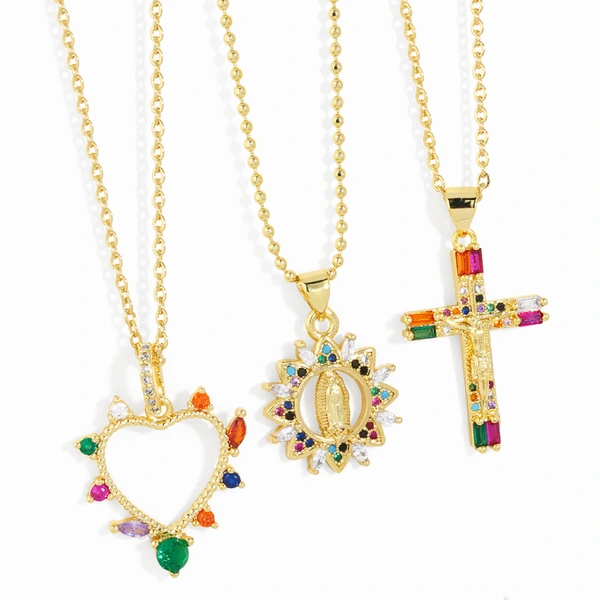 Collier croix d'amour en zircon coloré, chaîne de clavicule, bijoux européens et américains, vente en gros, nkp23
