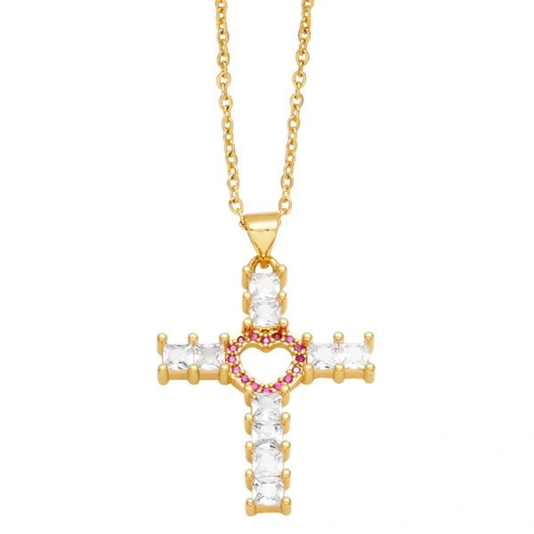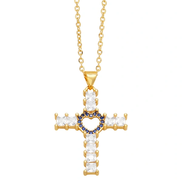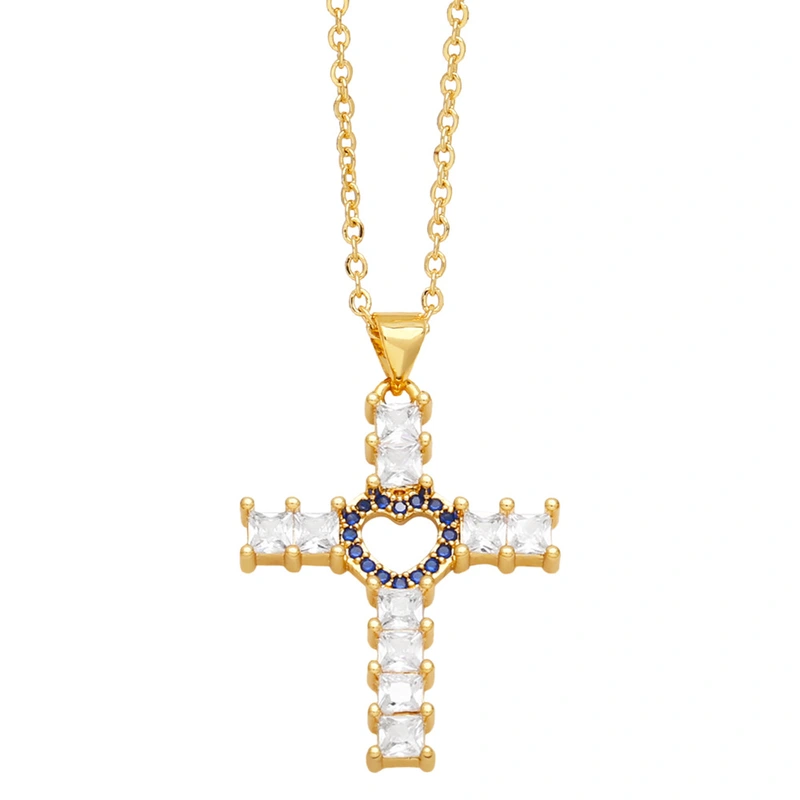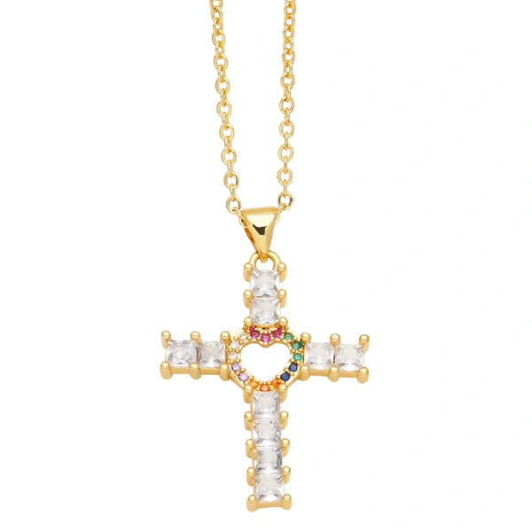 Collier croix d'amour hip-hop de mode européenne et américaine pour femme, chaîne de pull polyvalente de tempérament rétro nkq72
