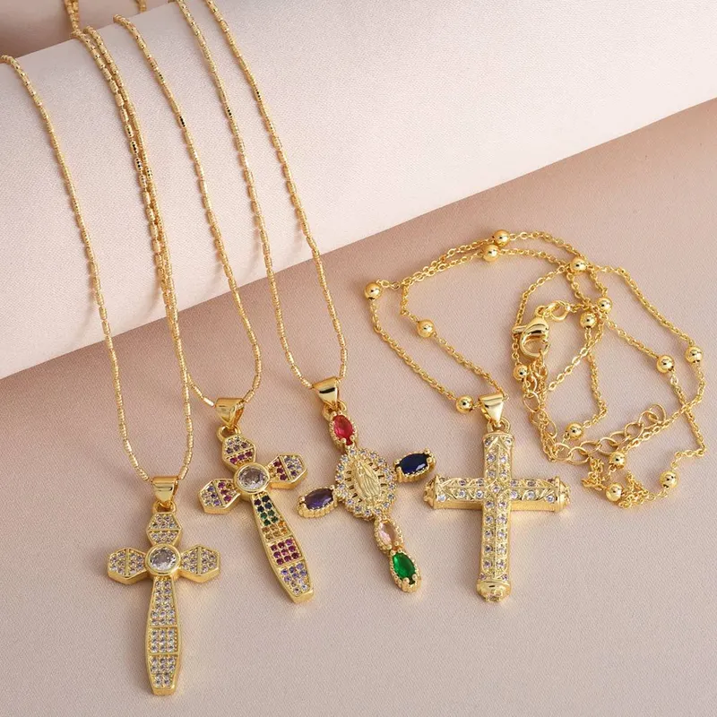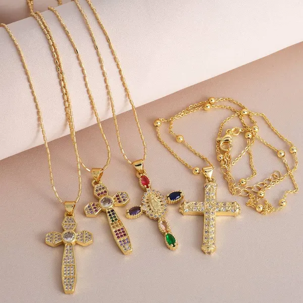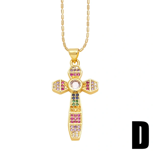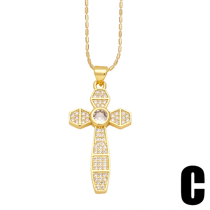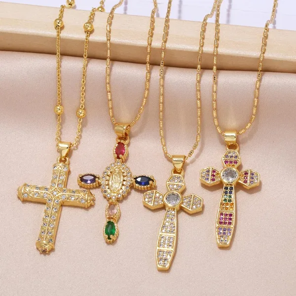 Collier croix en zircon incrusté de bijoux européens et américains, niche légère, collier de luxe hip hop Madonna, vente en gros nkb874