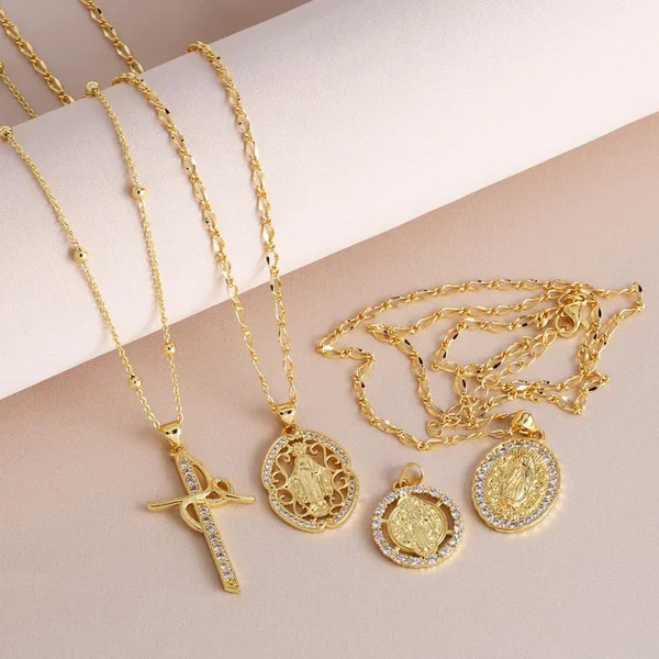 Collier croix en zircon incrusté, tendance européenne et américaine, collier clavicule vierge marie, nkb862
