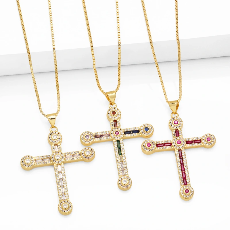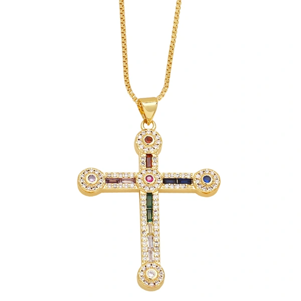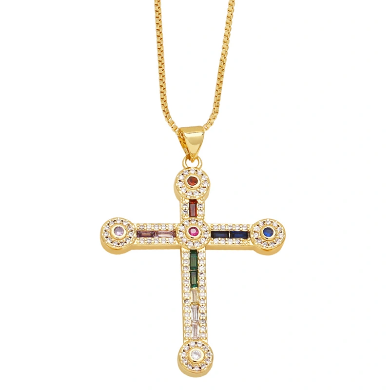 Collier croix hip-hop rétro tout-assorti, bijoux européens et américains, chaîne de pull croix en diamants, nkr87