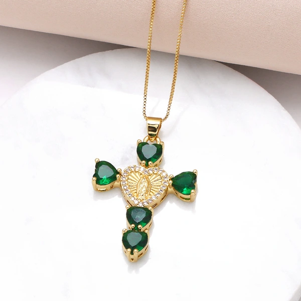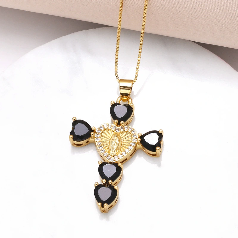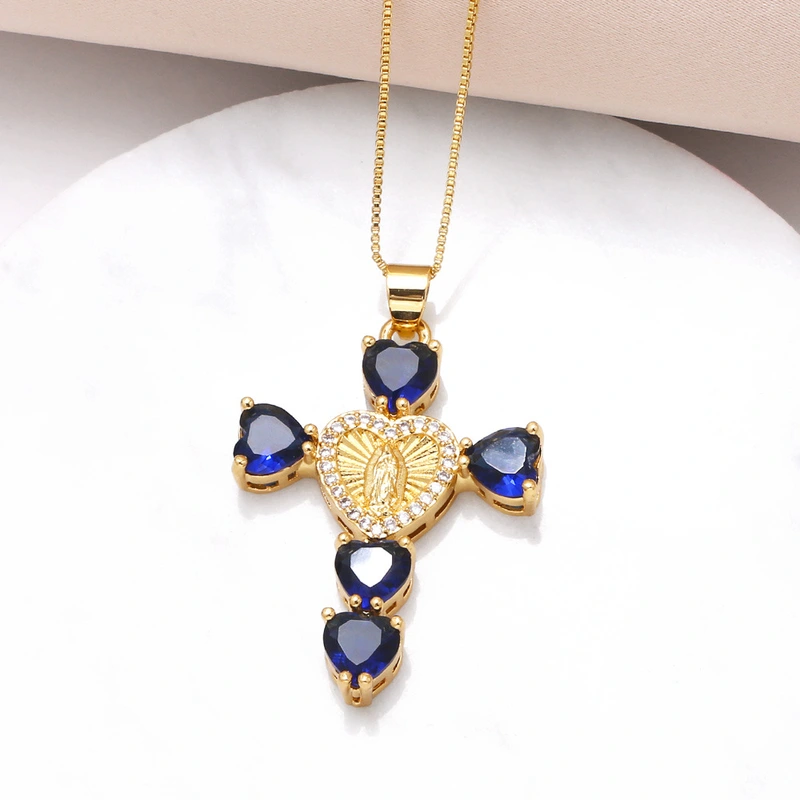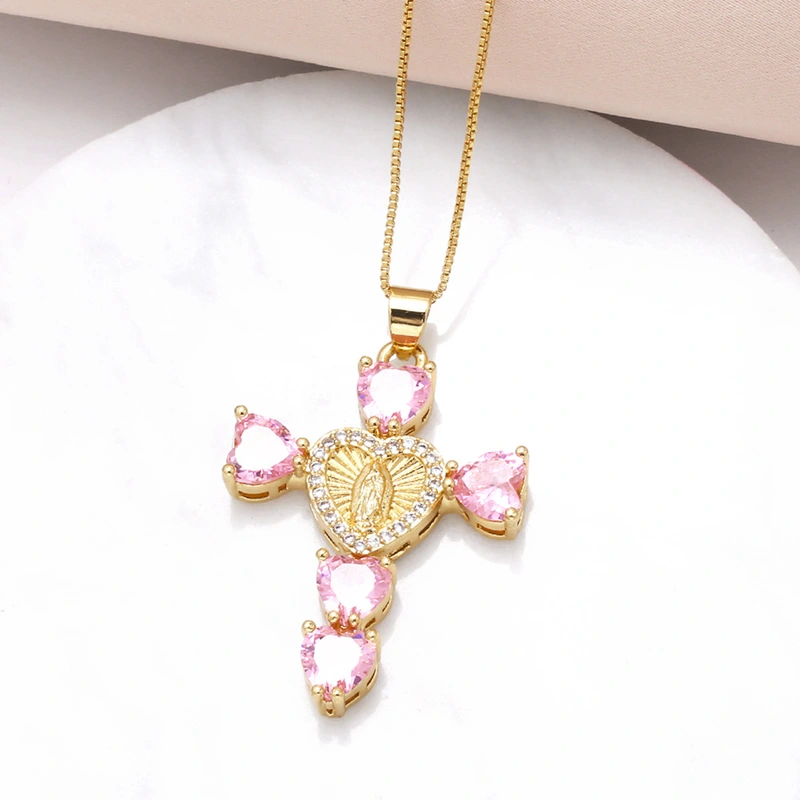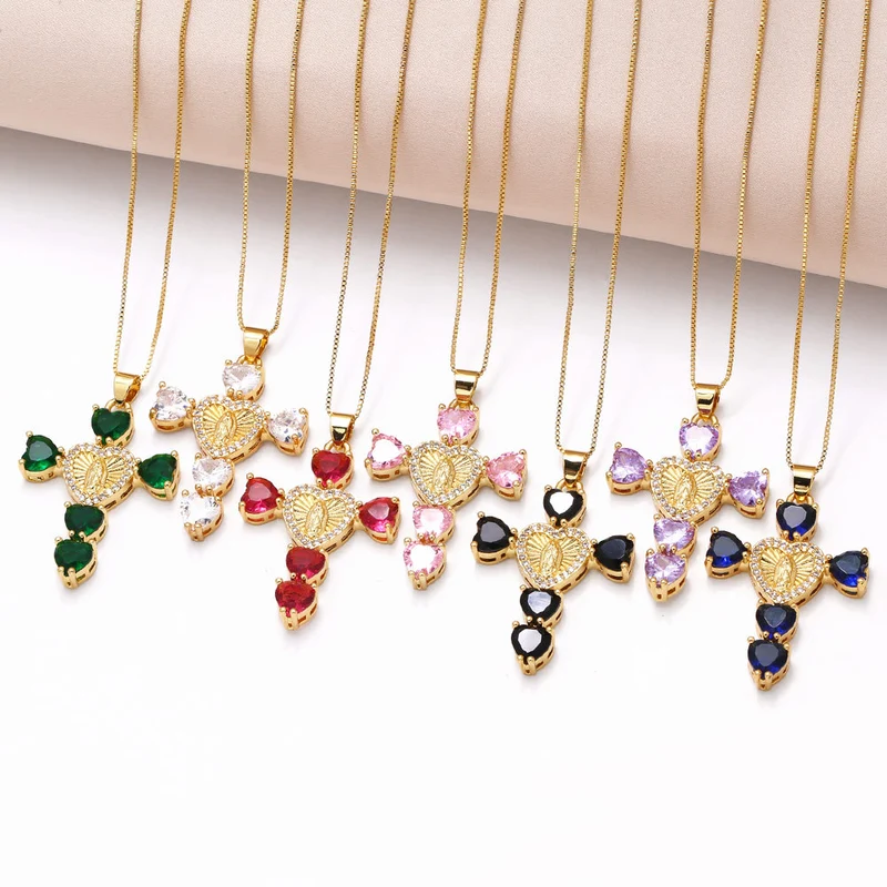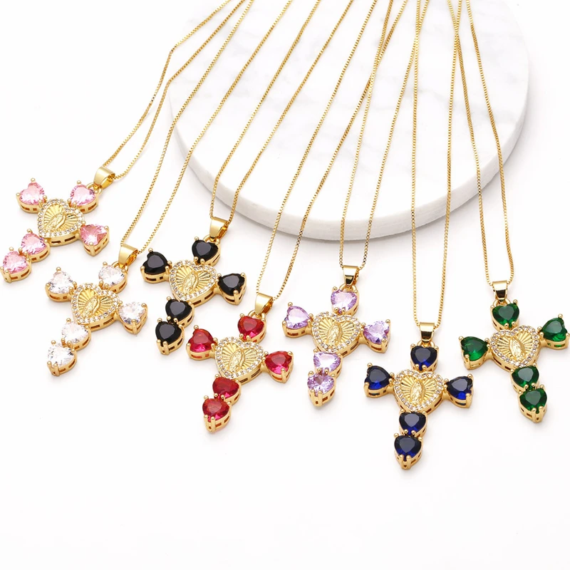 Collier croix Notre-Dame en zircone cubique, pendentif en forme de cœur, chaîne de clavicule, tendance, disponible en Europe et aux États-Unis, NKB182