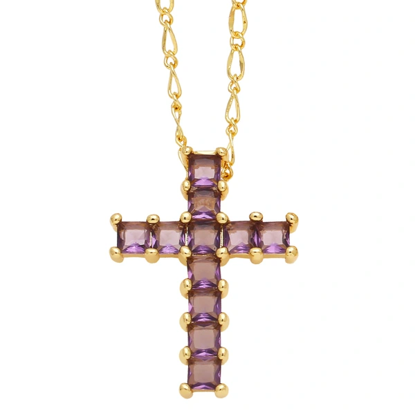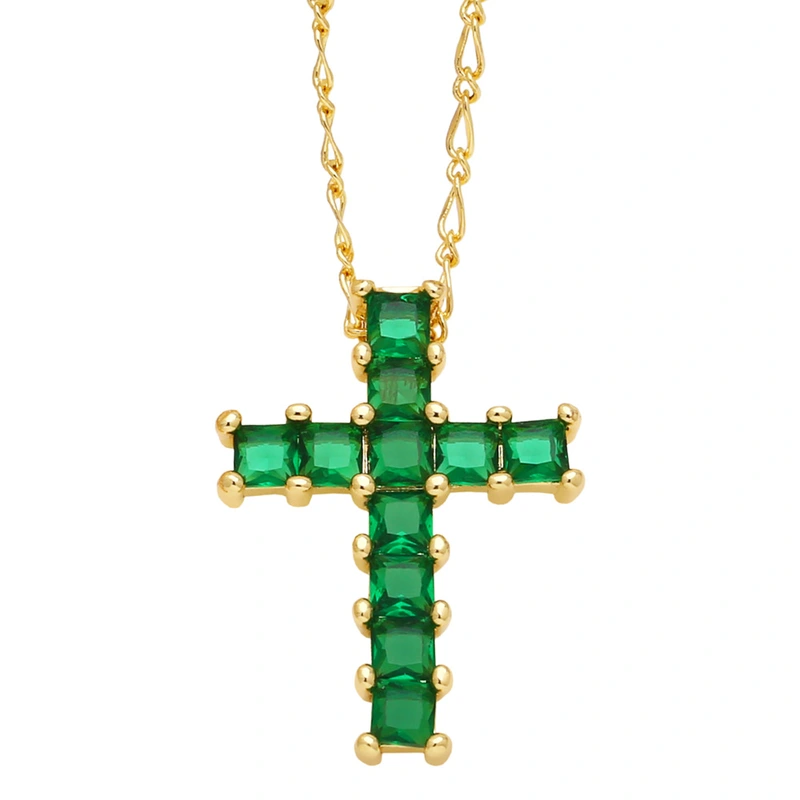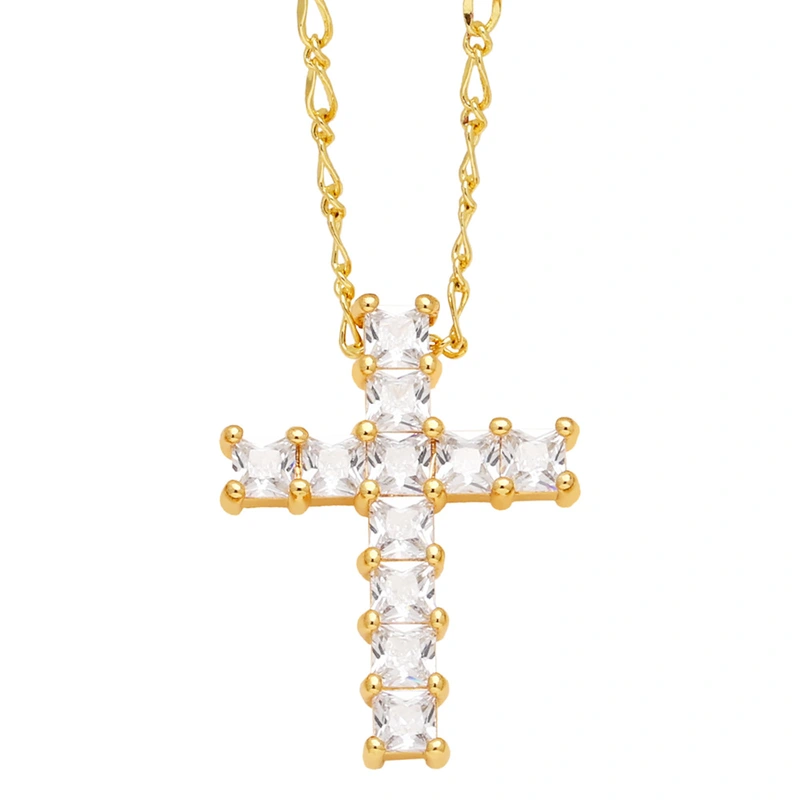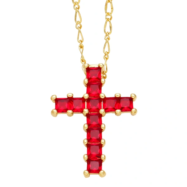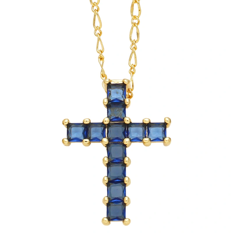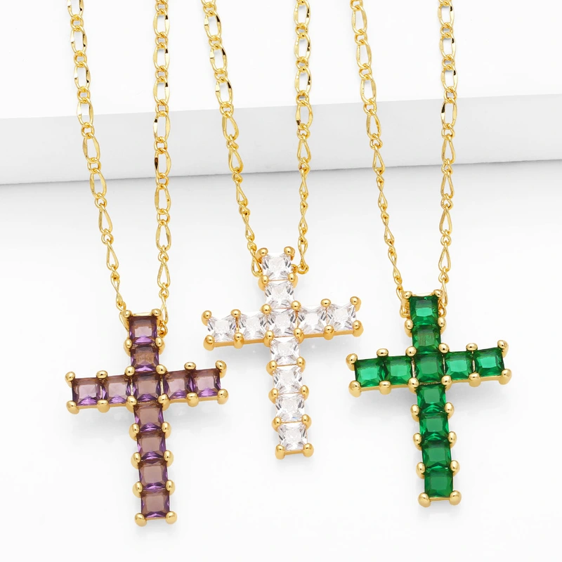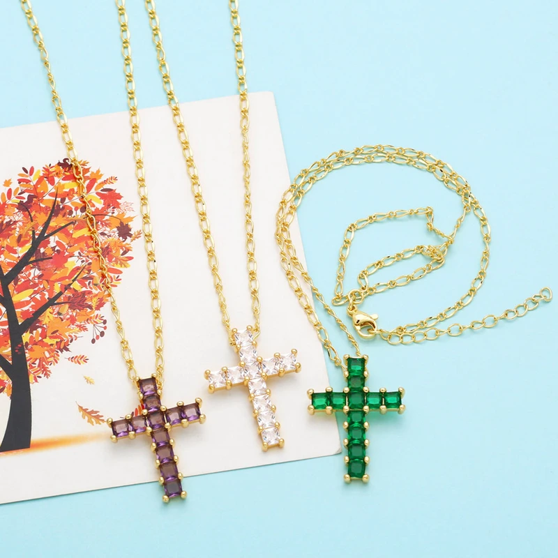 Collier croix populaire européen et américain niche tout-match hip-hop couleur zircon chaîne de clavicule nkb373