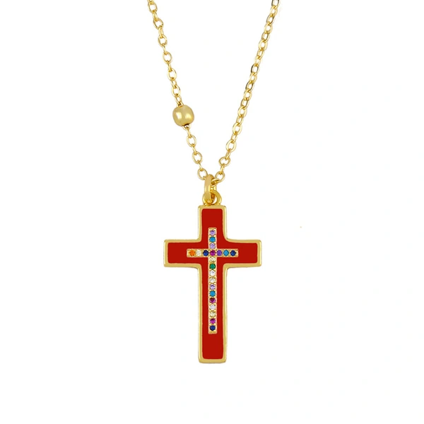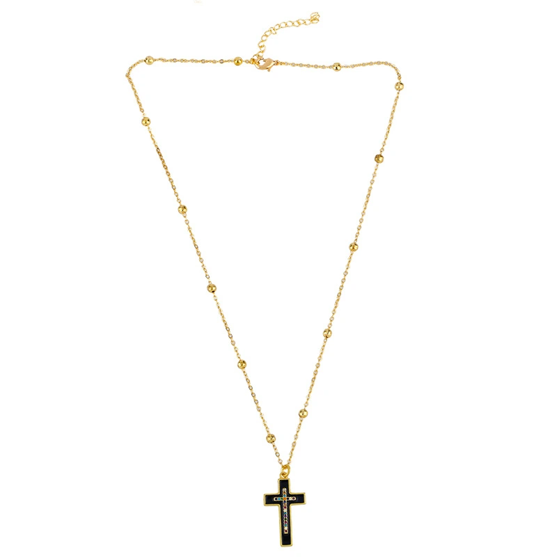 Collier croix rétro classique européen et américain, pendentif croix en diamant coloré incrusté de goutte d'huile, collier couple homme et femme nkq07