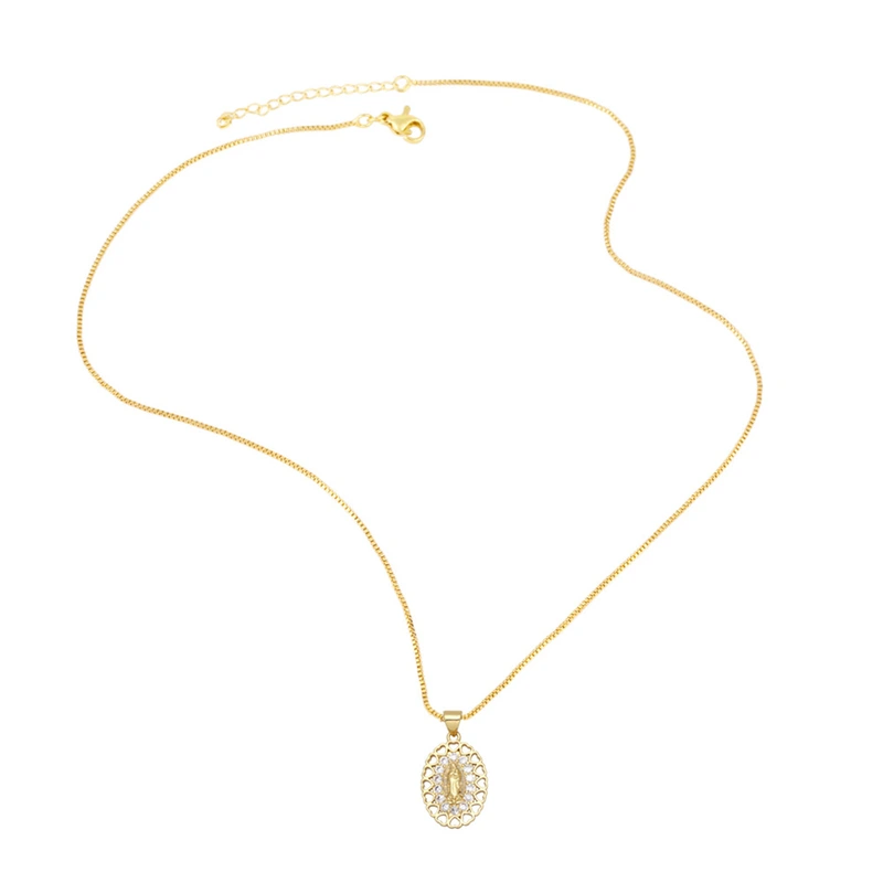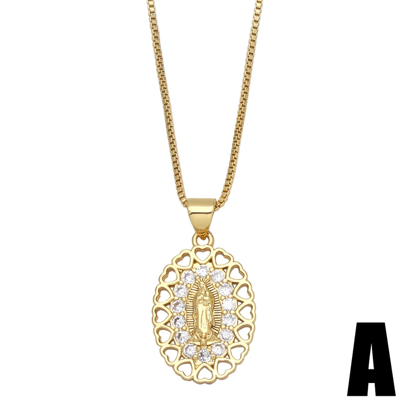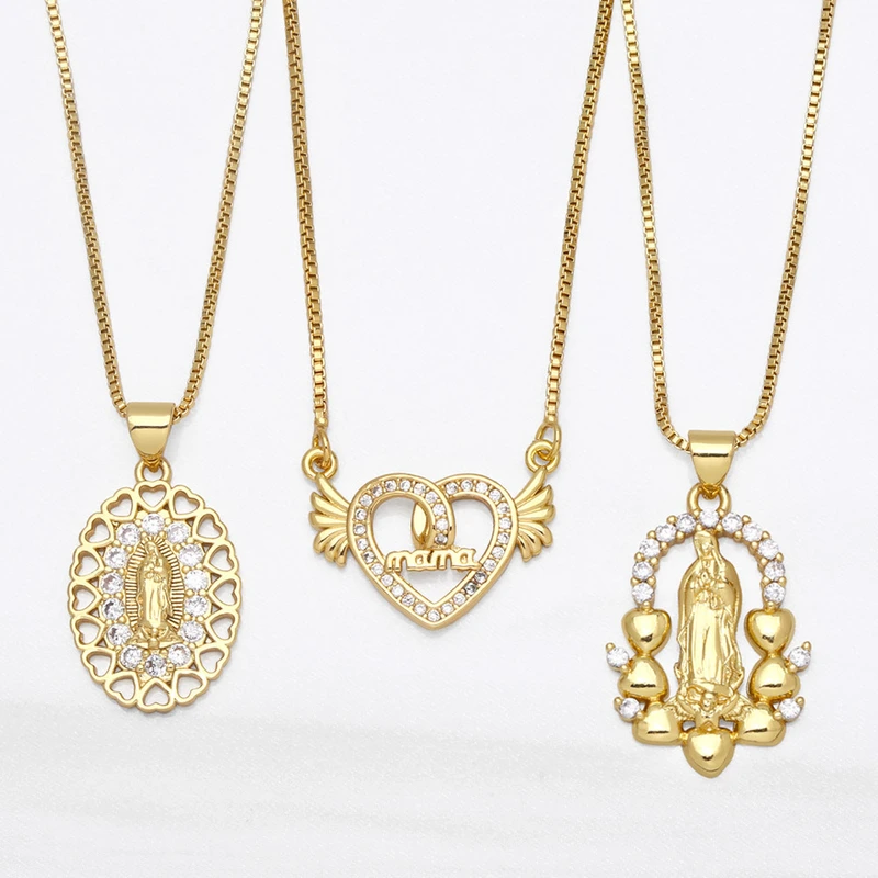 Collier d'accessoires religieux populaires en Europe et en Amérique, pendentif amour Vierge Marie avec collier diamant et zircon nkb035