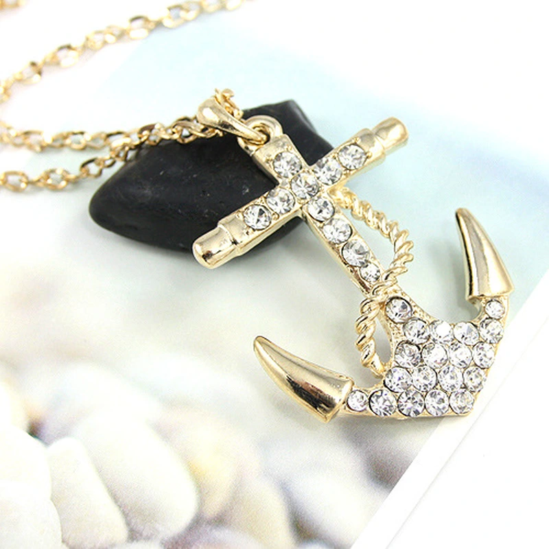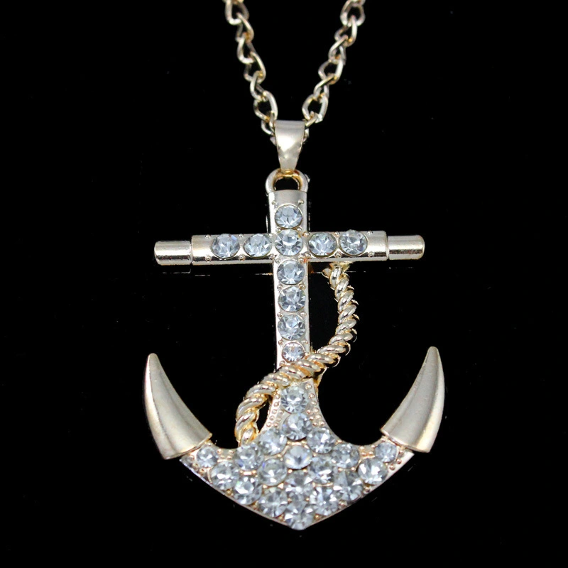 Collier de bijoux en diamants, bijoux européens et américains, collier pendentif en cristal d'ancre pour femmes, fabricant en gros nkk30