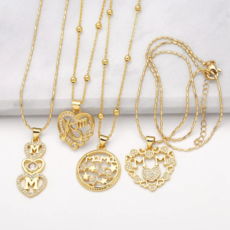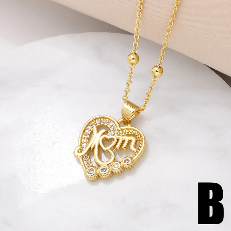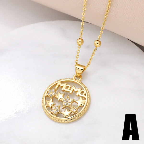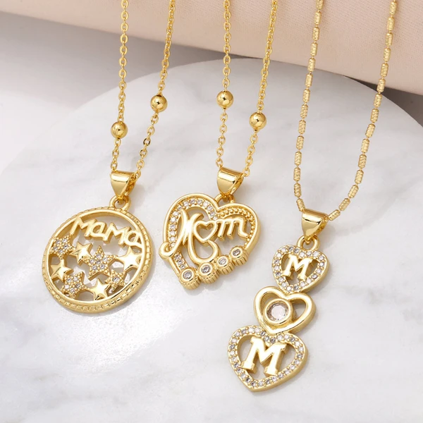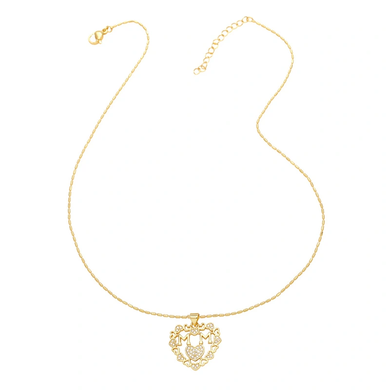 Collier de fête des mères européen et américain en forme de cœur de pêche, plaqué or, étoile incrustée de zircons, chaîne de clavicule nkt79