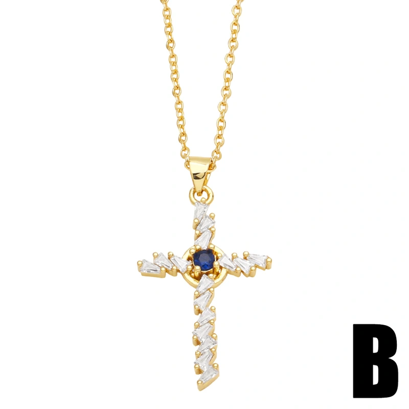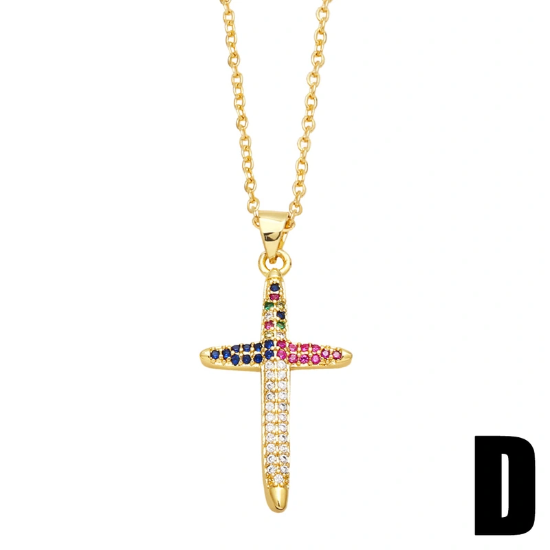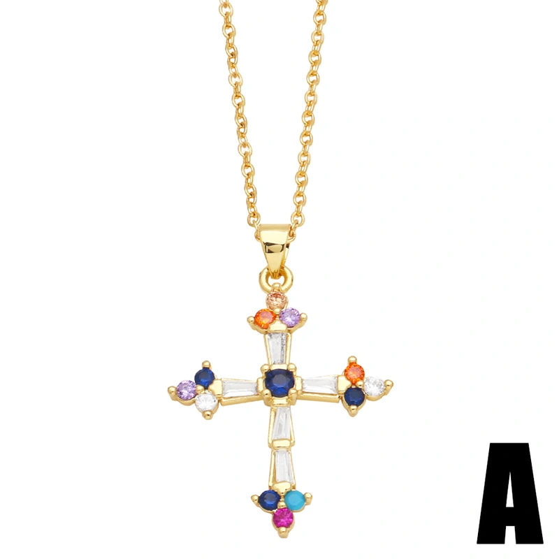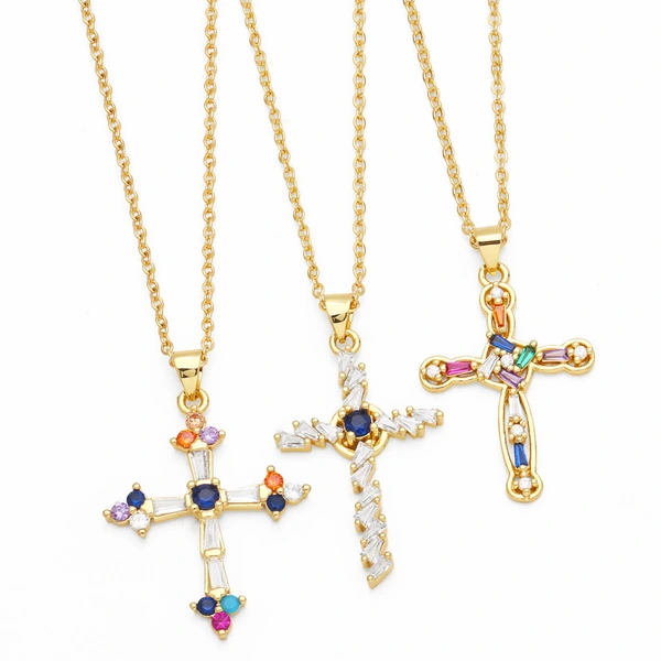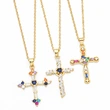 Collier de mode européen et américain, design de personnalité, micro incrusté de zircons colorés, pendentif croix, chaîne de clavicule pour femme nks46
