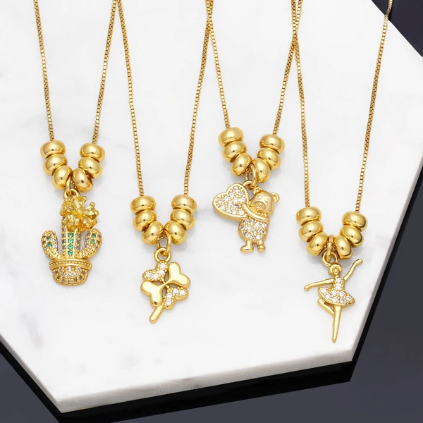 Collier de niche européen et américain pour femme, pendentif simple en forme de cactus et d'ours, idéal pour la clavicule, nkb268