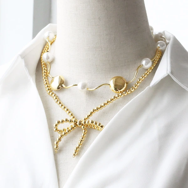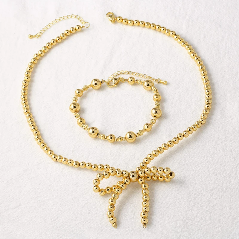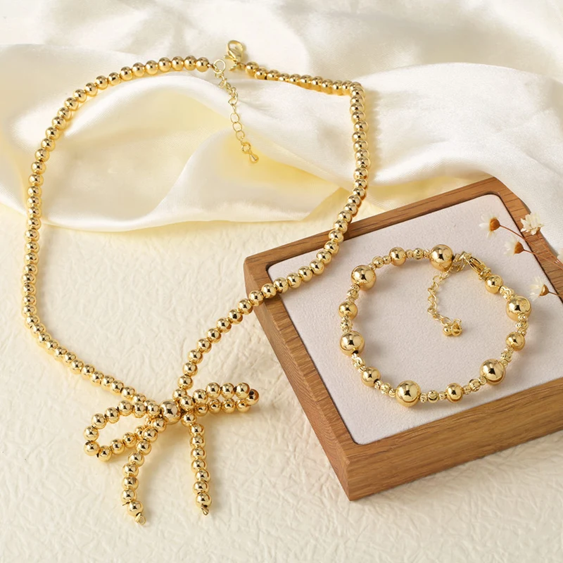 Collier de perles brillantes en or 18 carats plaqué cuivre, bracelet de perles rondes, style européen et américain, nka046