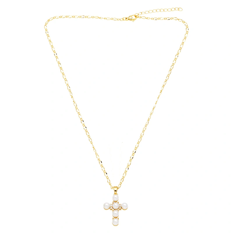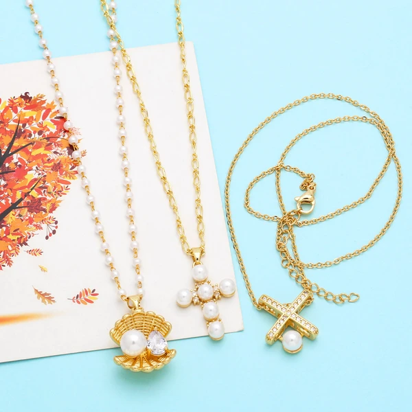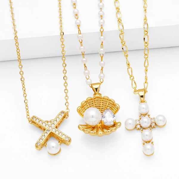 Collier de perles coquillage européen et américain, pendentif croix simple et tendance, chaîne de clavicule, bijoux en gros, nkb256